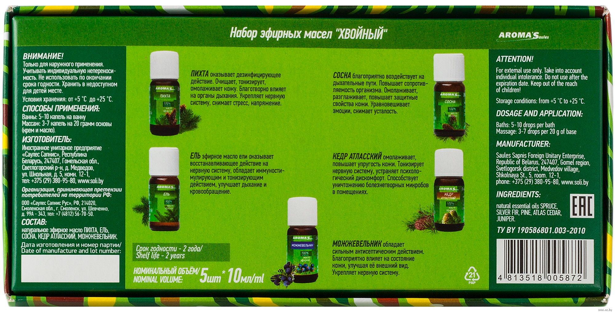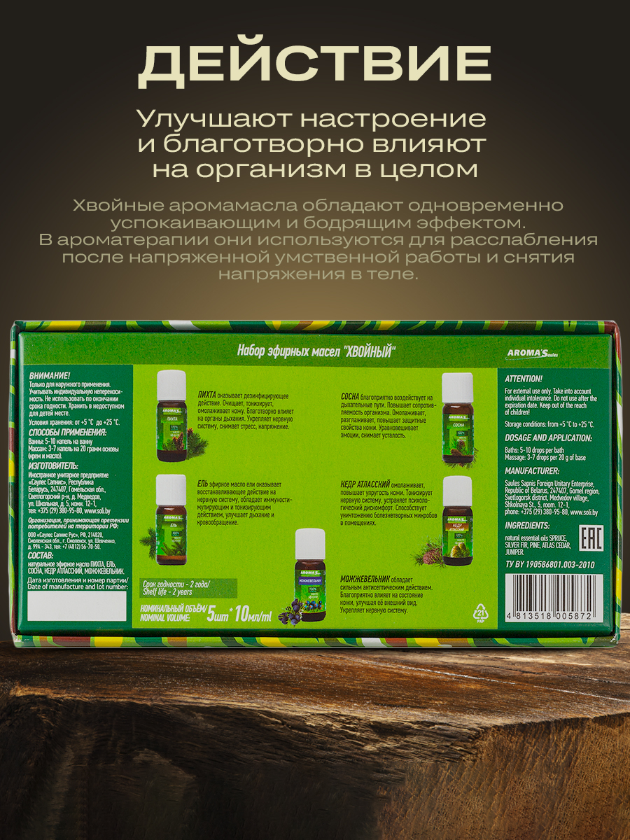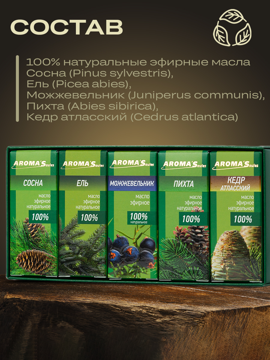 Натуральные эфирные масла кедра атласского, можжевельника, пихты, сосны, ели.