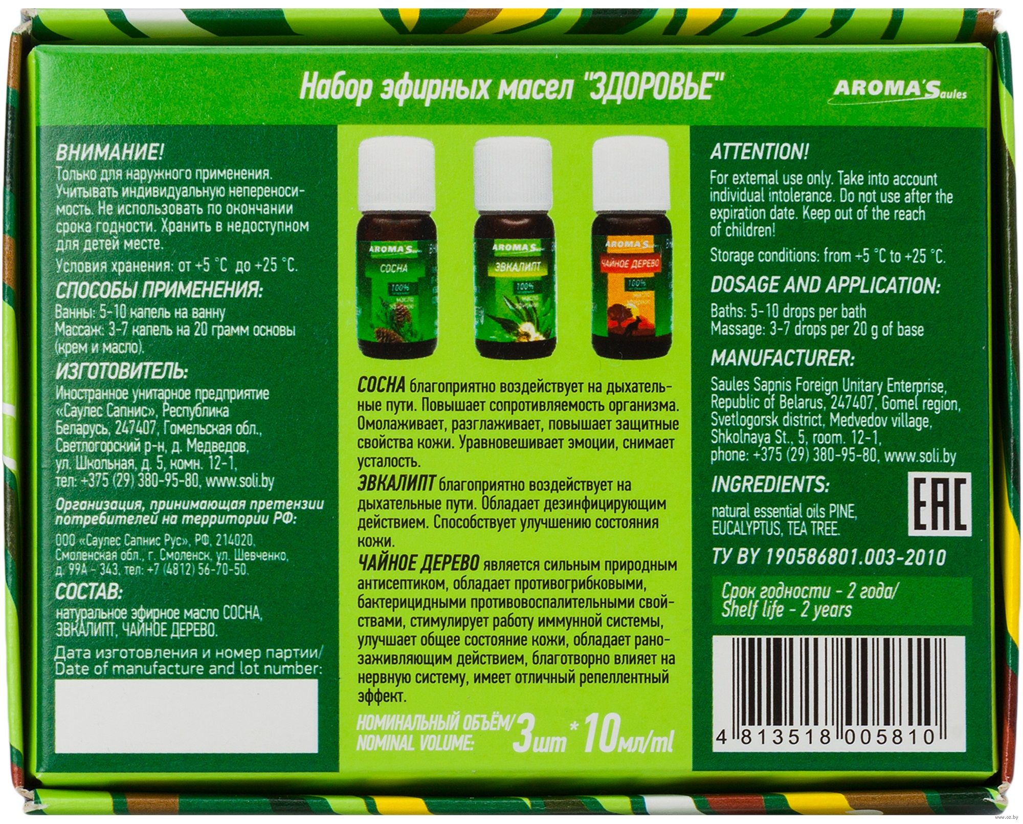 | Состав набора | Эфирное масло |