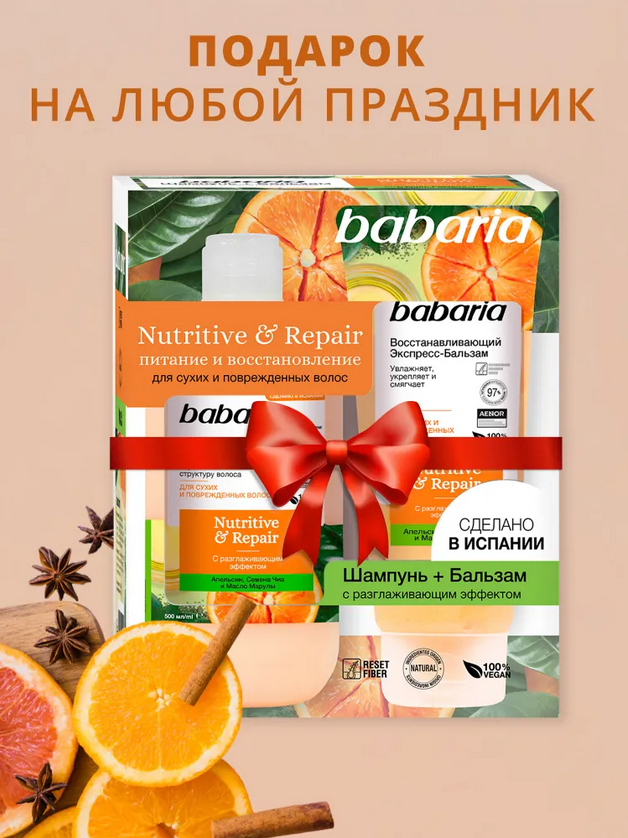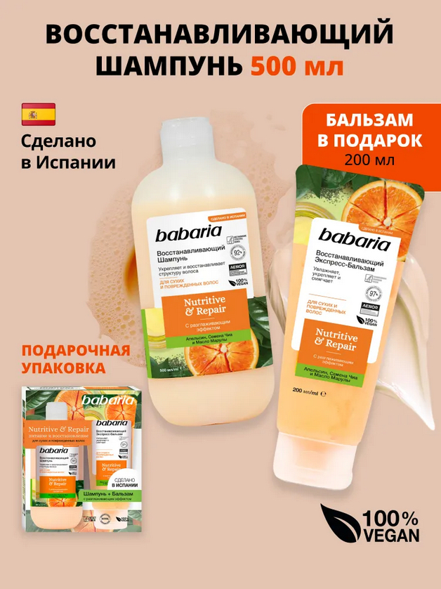 Babaria набор восстанавливающий для волос шампунь и бальзам.