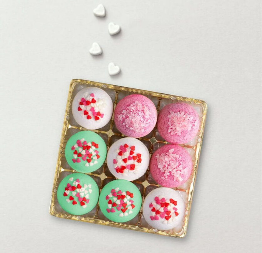 Набор Candy bath bar "Merci beaucoup" состоит из 9 бурлящих шаров по 40 г с индивидуальной посыпкой.