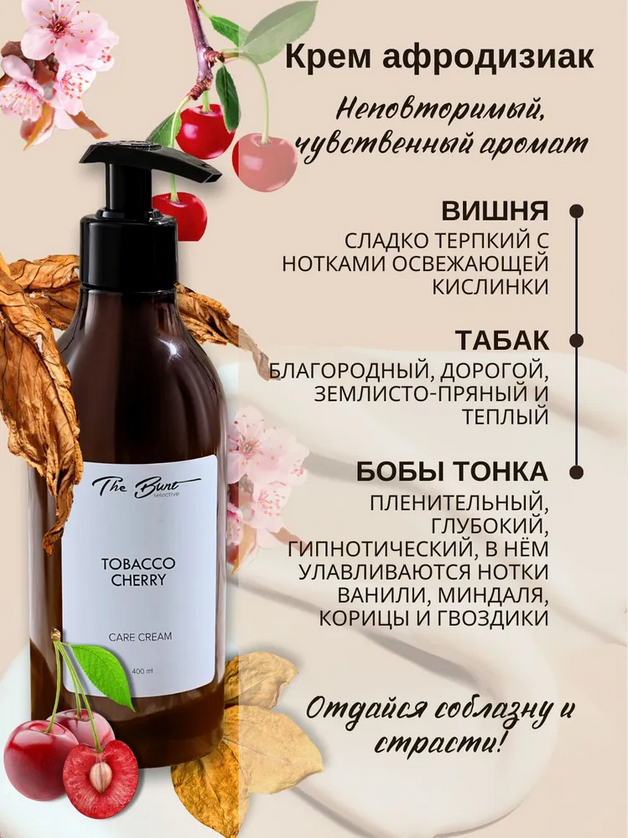 Финальные аккорды цветков вишни и табака создают неповторимый баланс между сладостью и дымностью, придавая аромату особую харизму и оригинальность, оставляя за собой волнующий шлейф.