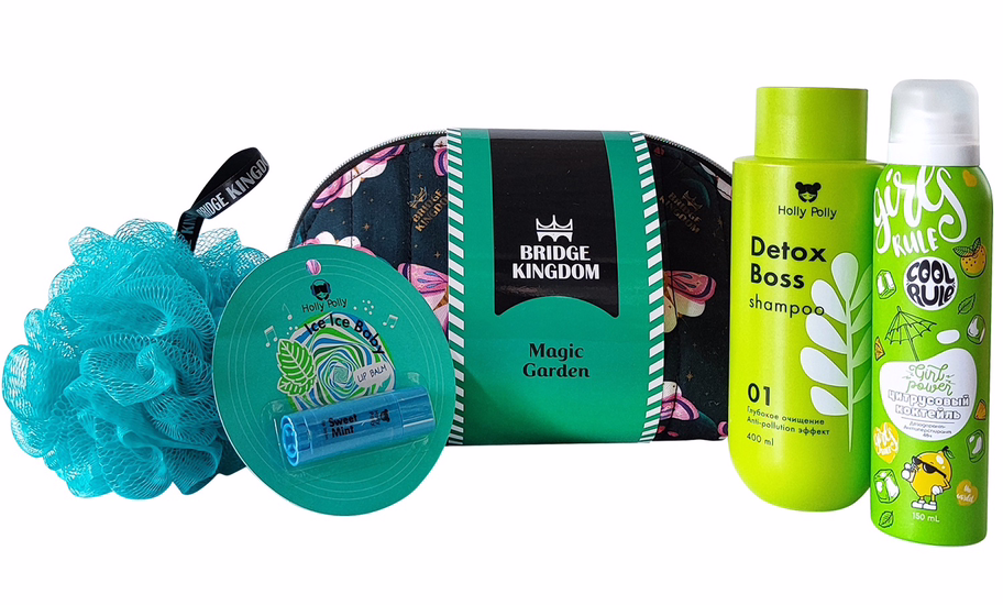 Подарочный набор "Magic Garden" (шампунь, дезодорант, бальзам для губ, мочалка)