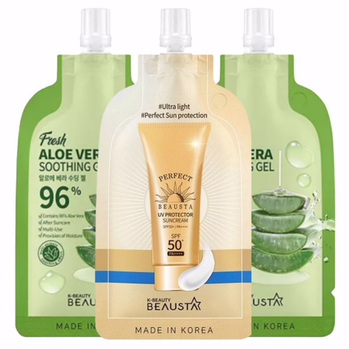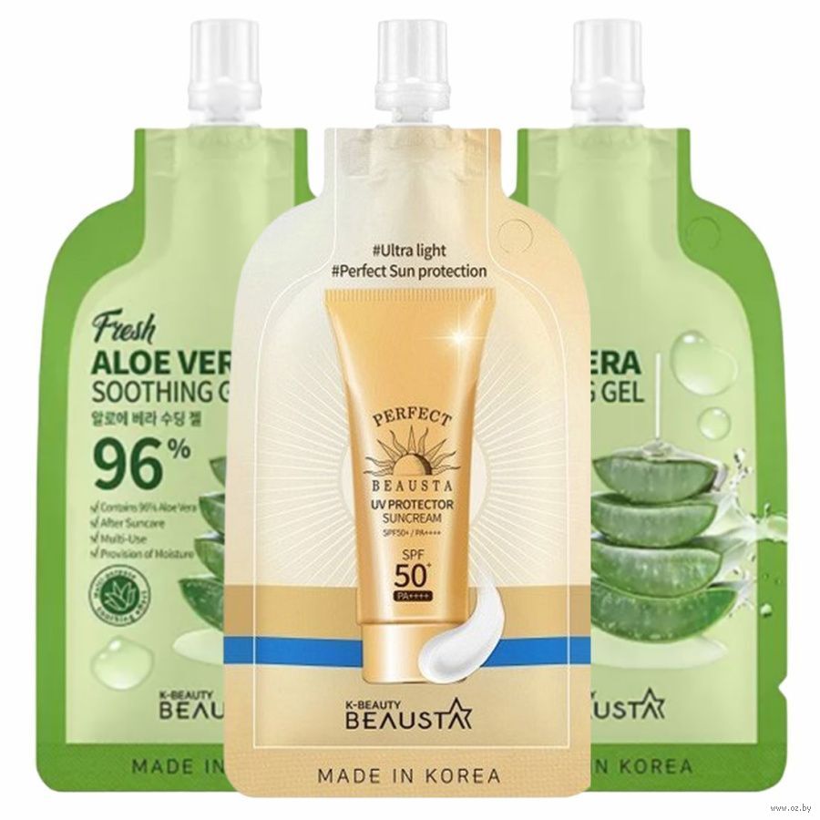 Набор корейских средств для защиты от солнца в Travel-формате. Полноценная и качественная корейская косметика, которая легко поместится в косметичке и не займет много места в багаже.