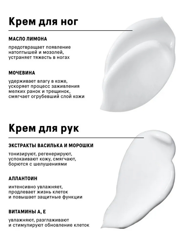 Набор для ежедневного ухода за кожей рук и ног. Ламеллярный крем для рук питает, смягчает и защищает от сухости, оставляя ощущение комфорта. Крем для ног с лимоном разглаживает кожу, устраняет шероховатость и дарит лёгкость. Идеальный уход для мягкости и красоты кожи в любое время года.