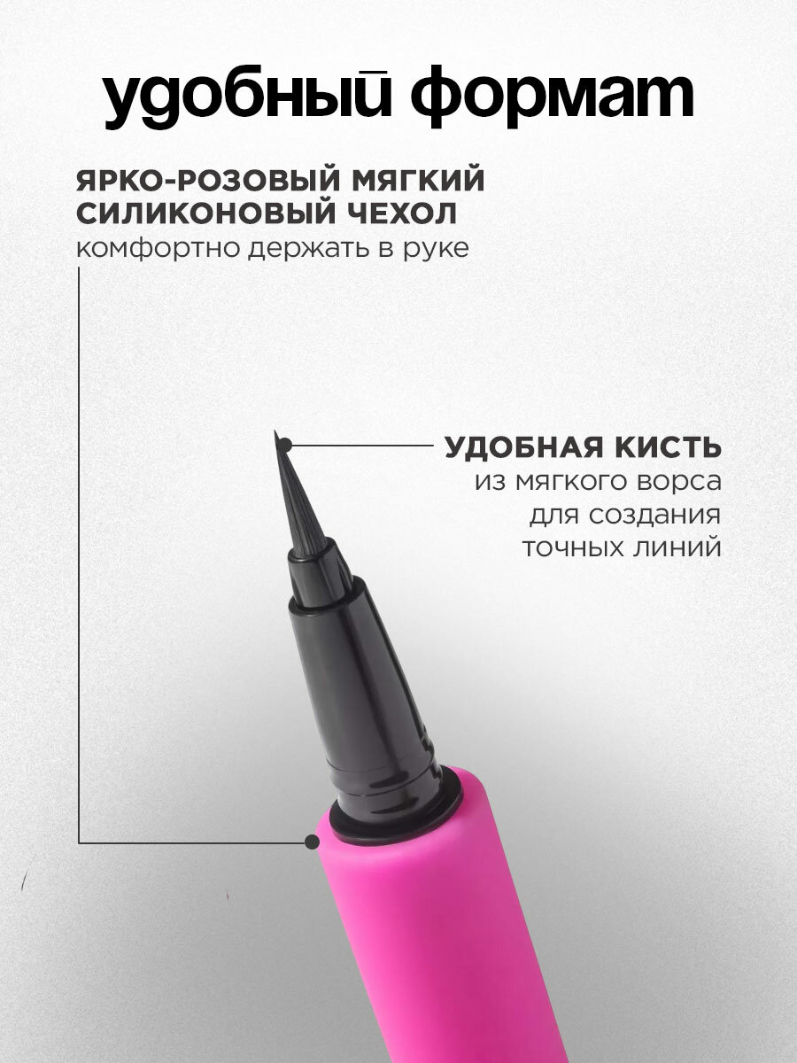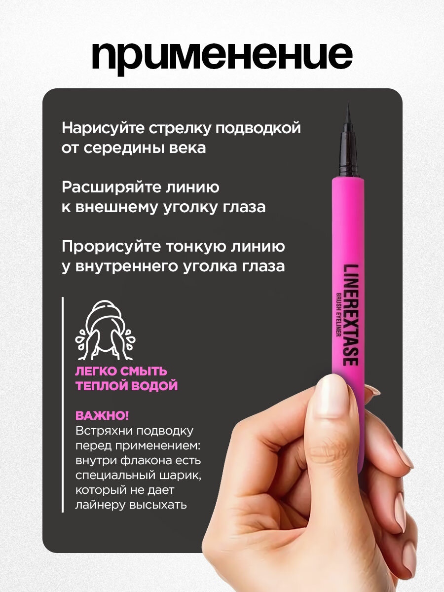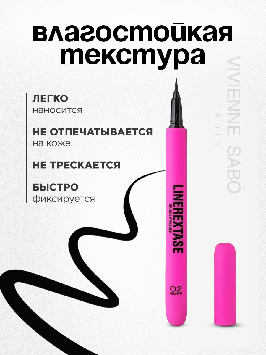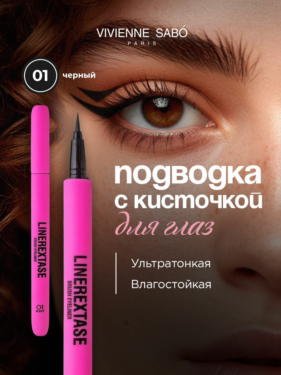 Черная влагостойкая подводка Linerextase (черная, 0,5 мл) с упругой кисточкой легко скользит в руке, помогая уверенно дойти до самых ярких стрелок в любых обстоятельствах. Лайнер будет стойким до тех пор, пока ты сама не захочешь смыть его теплой водой. Порадуй набором Vivienne Sabo в подарочной упаковке себя и близких!