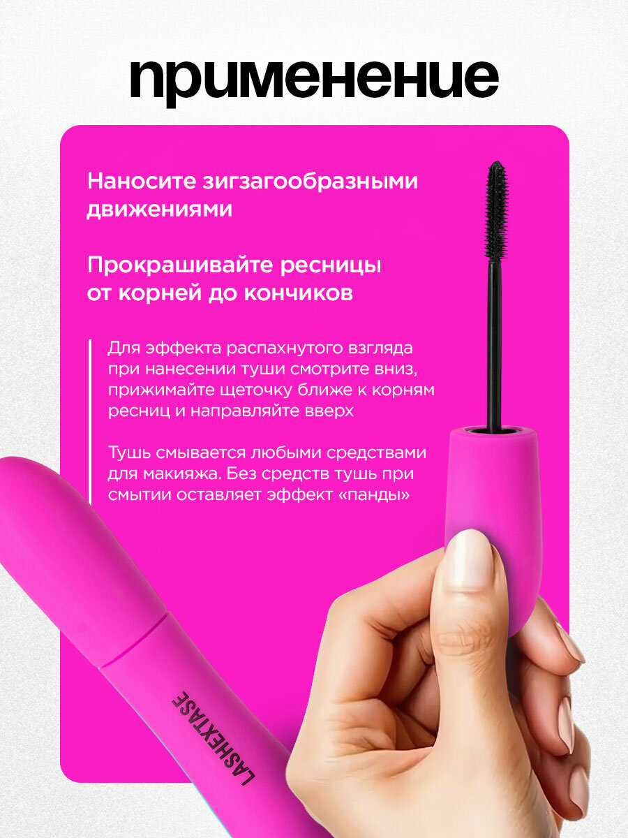 Тушь Lashextase (черная; 9 мл) с щеточкой с большим количеством тонких и гибких щетинок разной длины создает эффект мультиобъемных ресниц. Мягкая эластичная текстура обволакивает каждую ресничку и стойко держится в течение дня. Ее легко наносить в несколько слоев, усиливая эффект без комочков. Тушь упакована в тактильно приятный силиконовый чехол.
