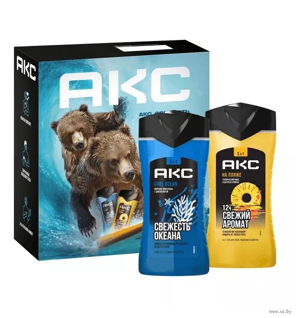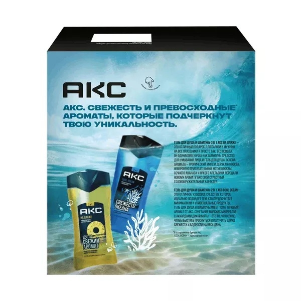 Набор состоит из: гель для душа и умывания лица, шампунь для волос 3в1 "На пляже" и гель для душа и шампунь для волос 2в1 "Cool Ocean". Ароматы набора – тропический микс с дерзкой клюквой и морские минералы с аккордами дикой мяты.