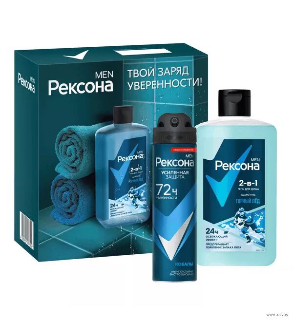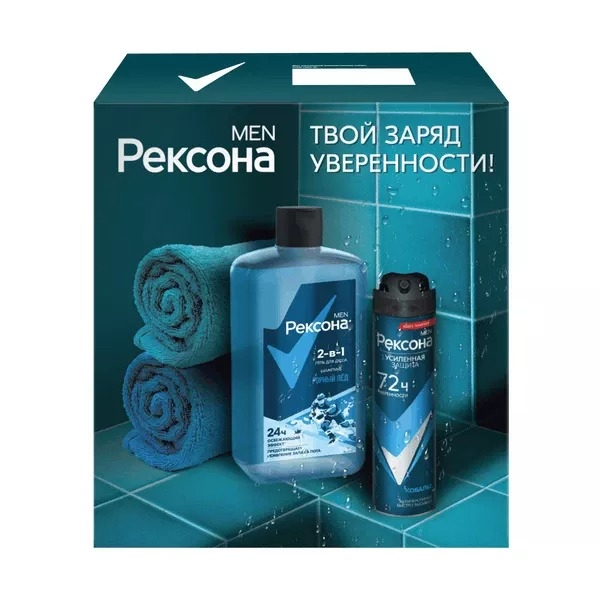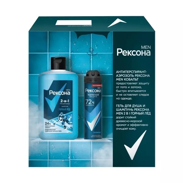 Шампунь 2 в 1 бережно очищает, освежает и увлажняет кожу, восстанавливает ее защитный барьер. Дезодорант-спрей Рексона MEN Кобальт устраняет запах и пот на 72 часа. Аэрозольный дезодорант с цитрусово-мятным ароматом не требует повторного нанесения в течение дня.