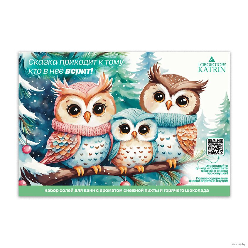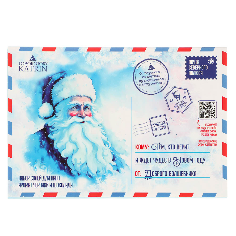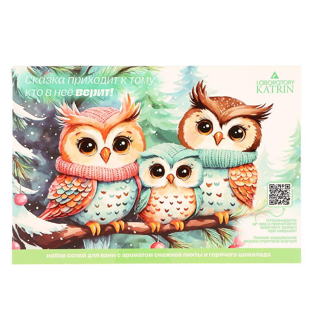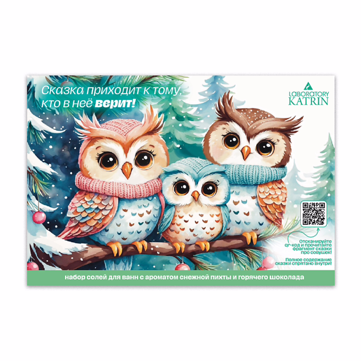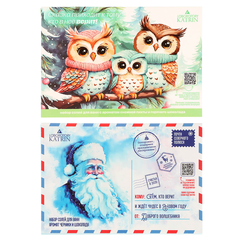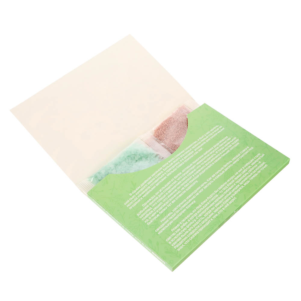 Набор соли для ванны-открытка "Сказка приходит к тому, кто в нее верит "состоит из пакетика соли с ароматом снежной пихты и пакетика соли с ароматом горячего шоколада.