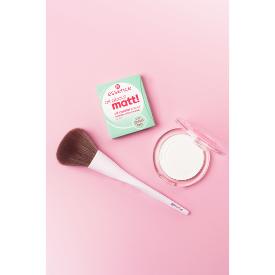 Трио средств для идеальной матовой кожи. Нанеси прозрачную фиксирующую пудру about matt! fixing compact powder c помощью пушистой кисти powder brush, чтобы зафиксировать макияж и придать ему бархатистый финиш. Не забудь убрать в сумочку матирующие салфетки all about matt! oil control paper, чтобы контролировать избыточный блеск кожи в течение дня.