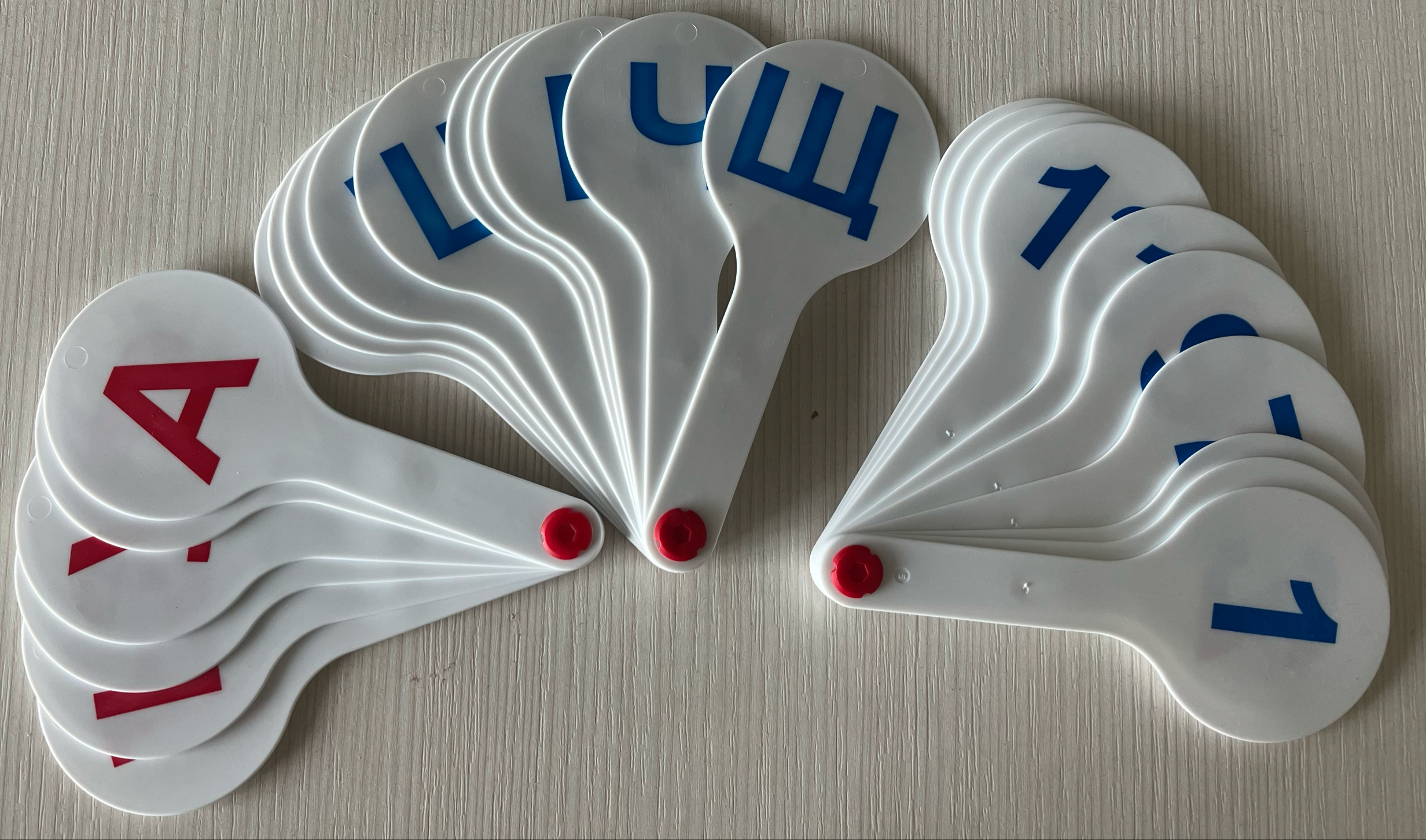 Набор школьных вееров с гласными, согласными буквами и цифрами от 1 до 20. Выполнен из качественного пластика, буквы устойчивы к истиранию.