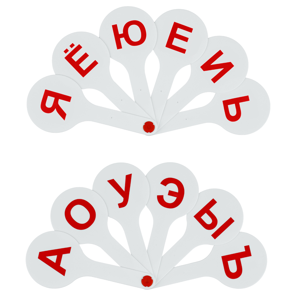 Касса-веер гласные буквы предназначена для обучения детей младших классов и дошкольников.