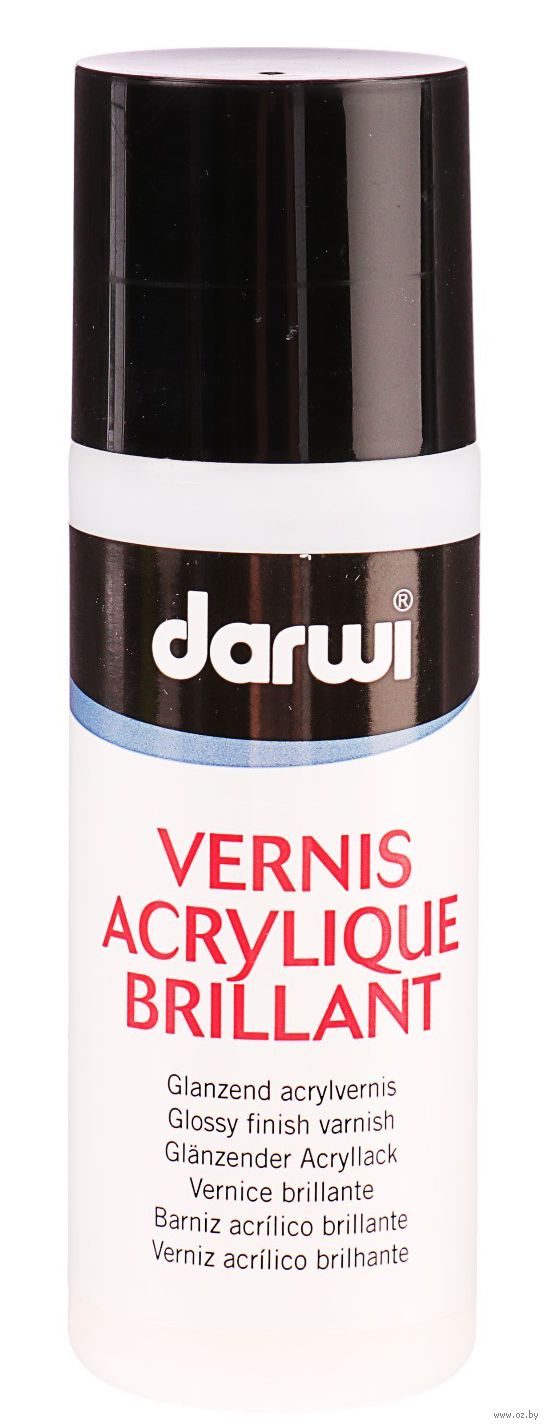 Акриловый глянцевый лак "Darwi" на водной основе создает защитное покрытие, придает глянцевый блеск поверхности из гипса, дерева, стекла, пластика, металла, подходит для полимерной глины любого типа, усиливает интенсивность цвета.