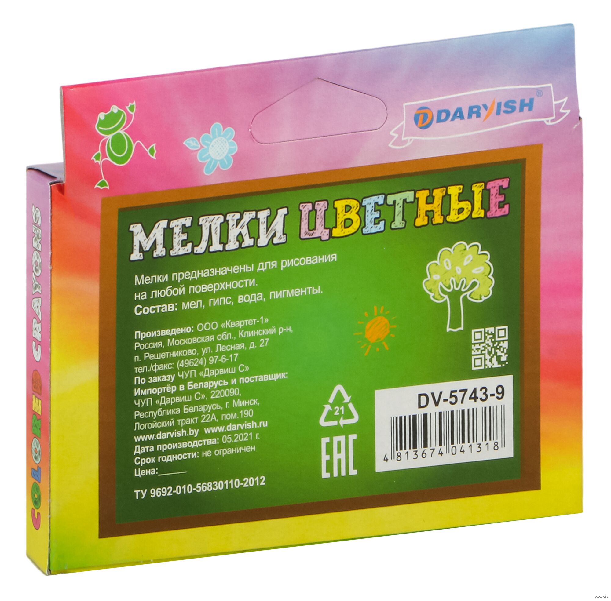Изготовлен из высококачественного природного сырья без химических добавок. Предназначены для рисования на любой поверхности.
