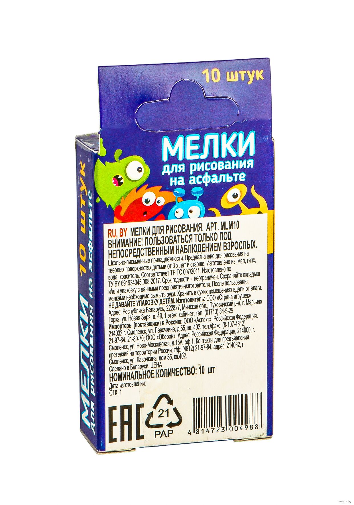 Набор из 10 тонких разноцветных мелков в картонной упаковке.