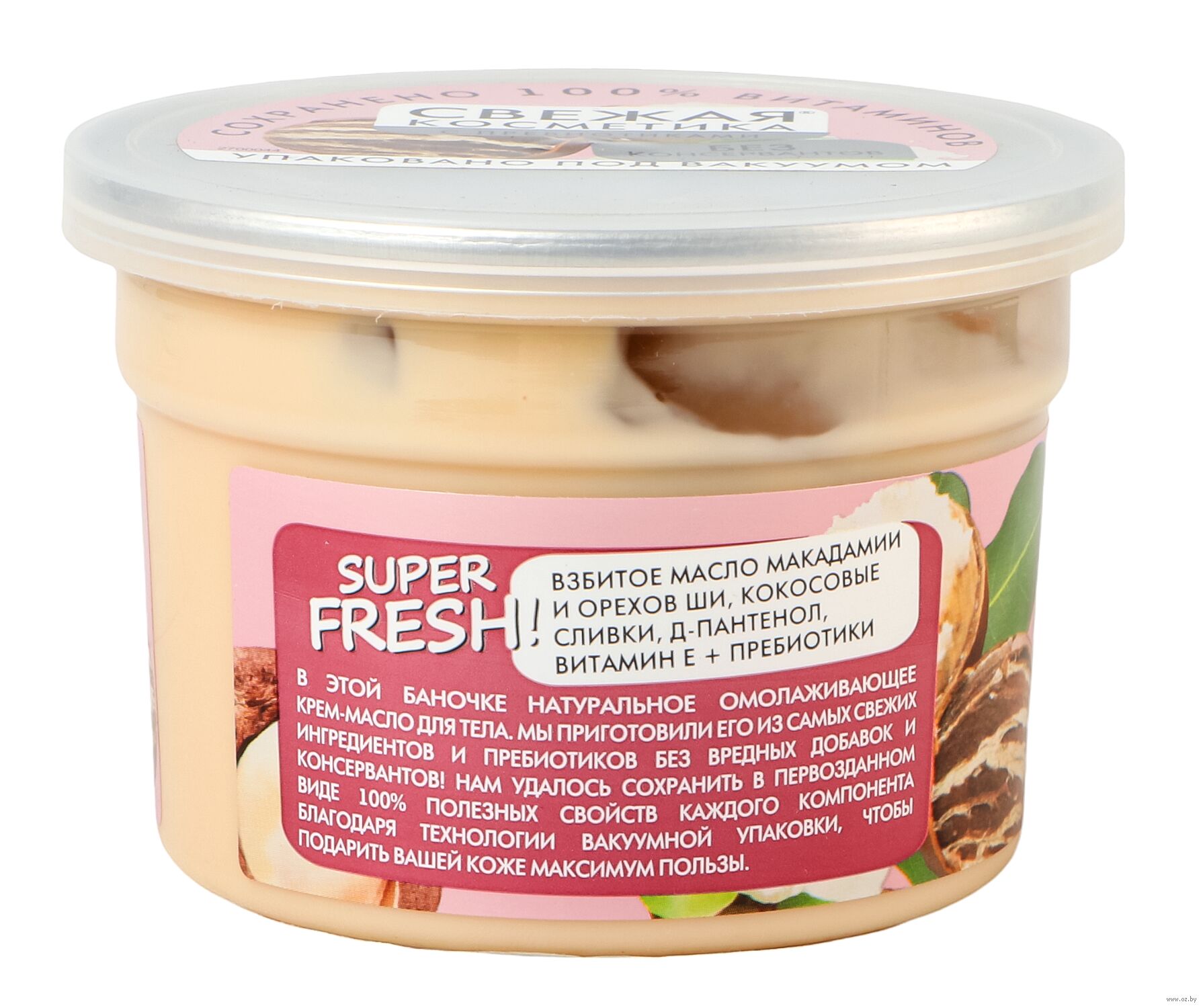 В этой баночке 100% натуральное омолаживающее крем-масло для тела. Приготовиленный из самых свежих ингредиентов и пребиотиков без вредных добавок и консервантов. В нем сохранились в первозданном виде 100% полезных свойств каждого компонента благодаря технологии вакуумной упаковки, чтобы подарить вашей коже максимум пользы.