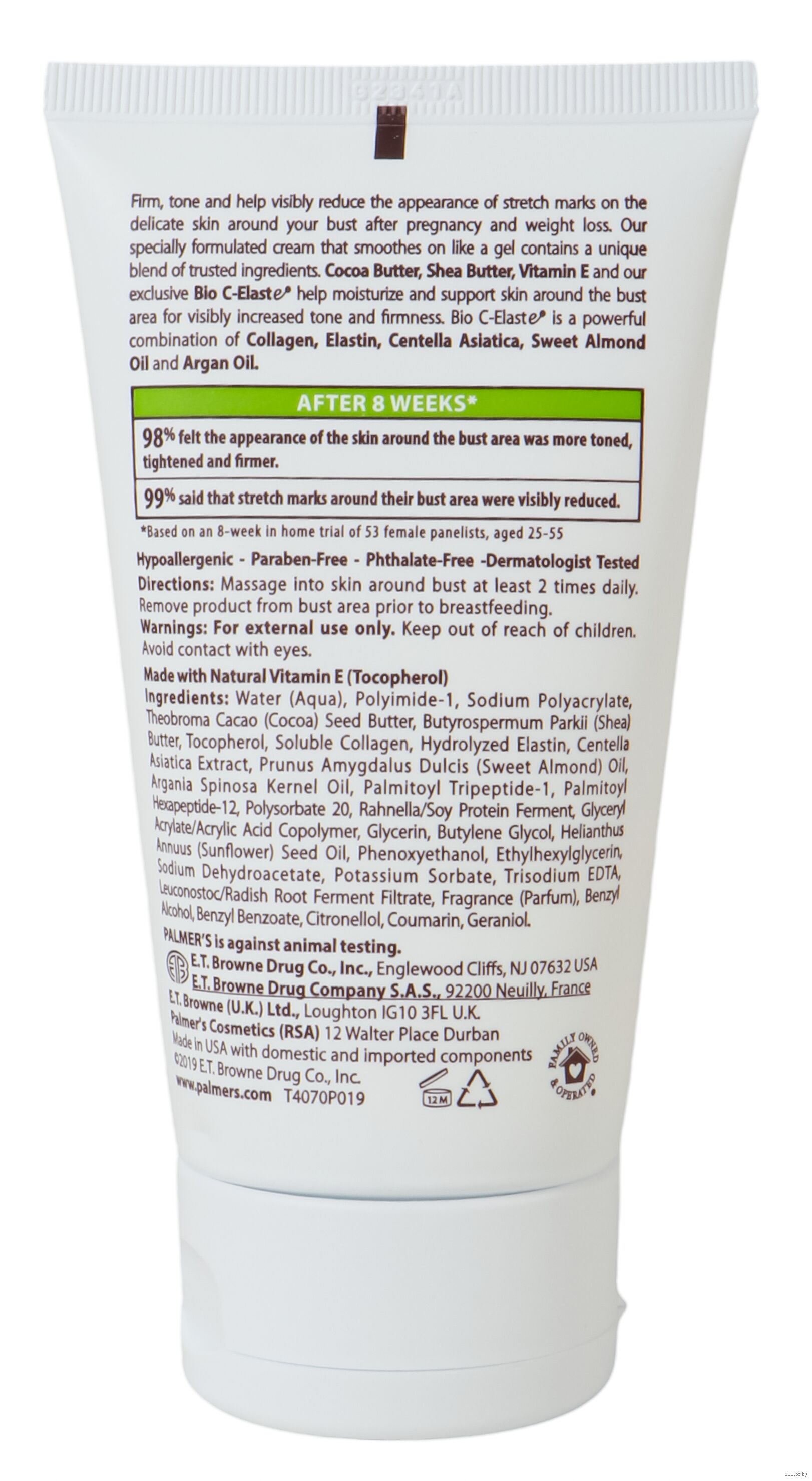 Укрепляет, тонизирует и способствует сокращению растяжек на нежной коже груди, даже после родов или при потере веса. После применения кожа груди подтягивается, укрепляется и становится более упругой.