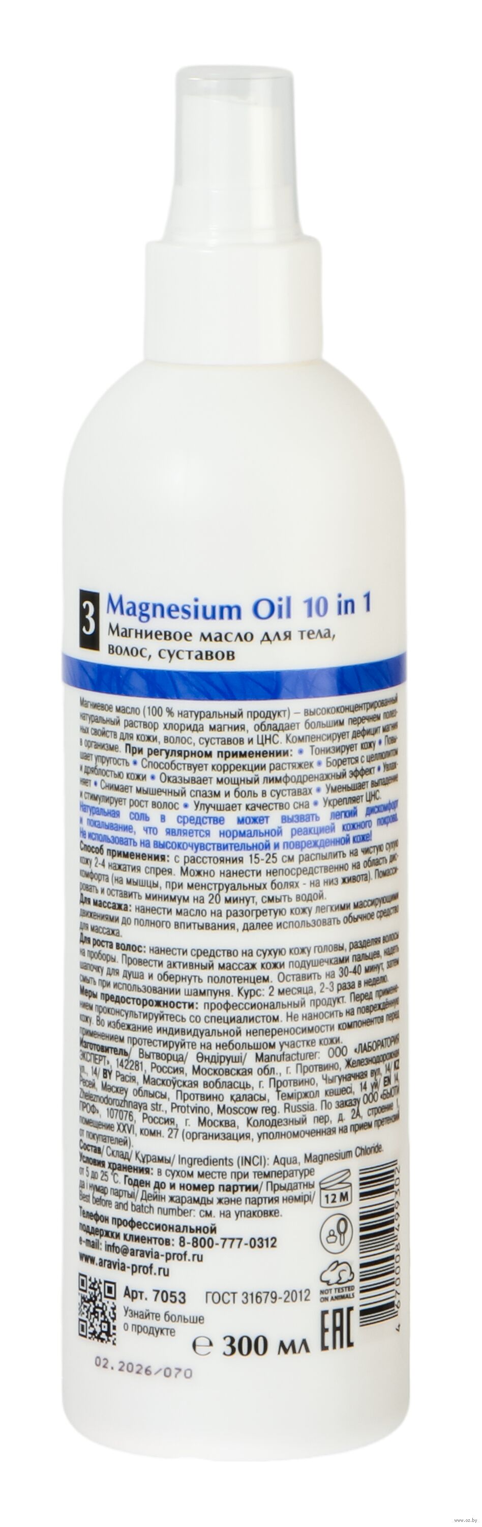 Магниевое масло (100 % натуральный продукт) – высококонцентрированный натуральный раствор хлорида магния, обладает большим перечнем полезных свойств для кожи, волос, суставов и ЦНС. Компенсирует дефицит магния в организме.