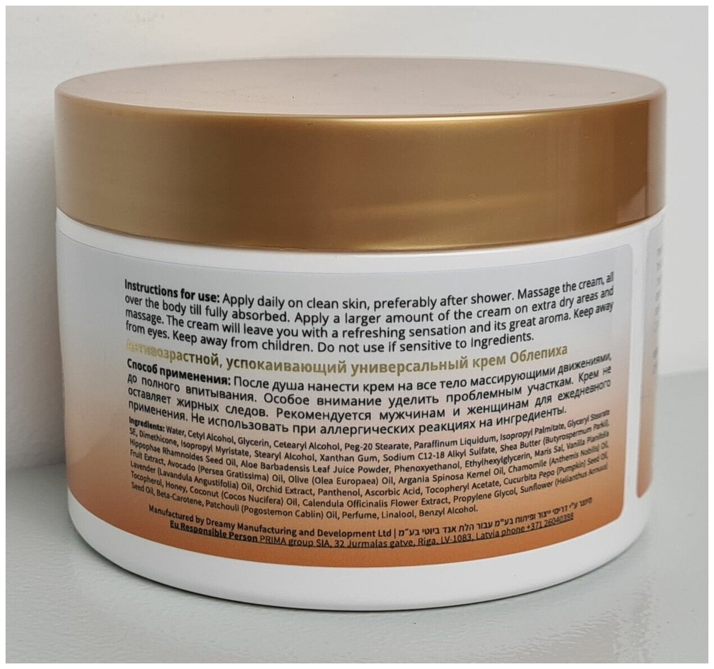 Крем Облепиха – новейший продукт с природным эффектом замедления старения, предназначенный для разглаживания морщин и для предотвращения образования растяжек в процессе похудения. Предотвращает сухость кожи и появление пигментных пятен. Крем создан на основе минералов Мёртвого моря, обогащён маслом облепихи, витамином Е, экстрактом алоэ.