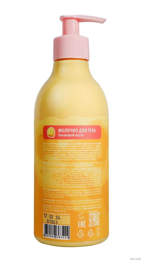 Увлажняющее молочко для тела с ароматом бананового ласси мягко ухаживает за кожей и создаёт беззаботное настроение. Питательные масла, фруктовые экстракты, ниацинамид, пантенол и сок алоэ в его составе заботятся о том, чтобы тебя не беспокоили сухость, шелушения и раздражения. Легкая кремово-гелевая текстура тает на коже, обеспечивая моментальный увлажняющий эффект.