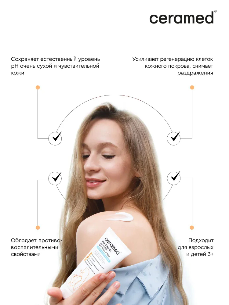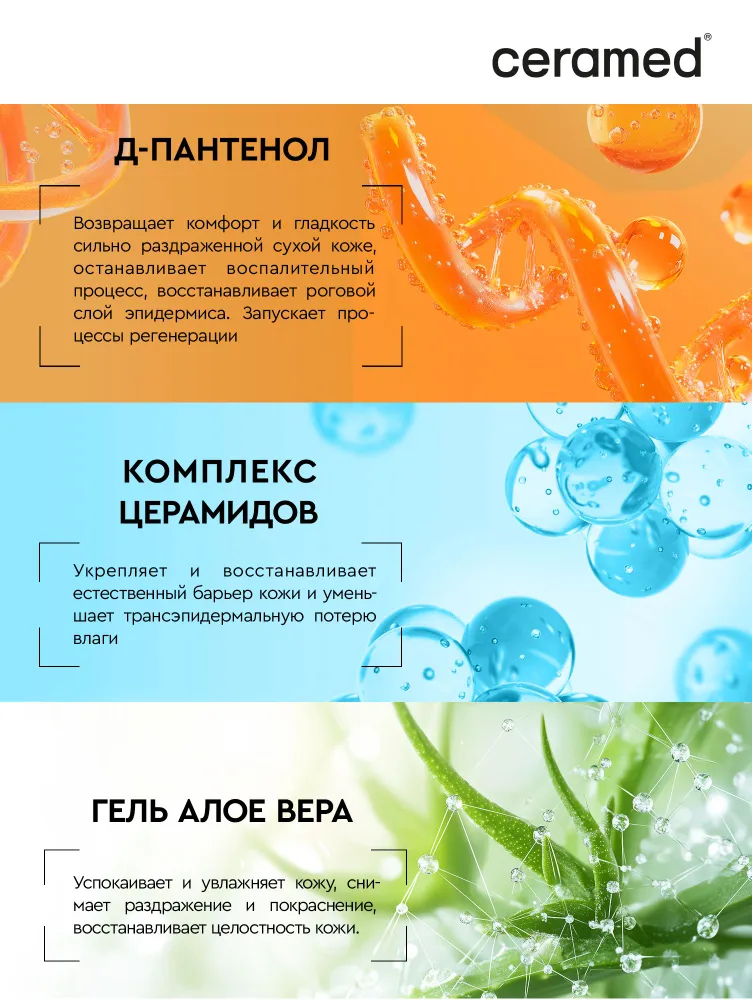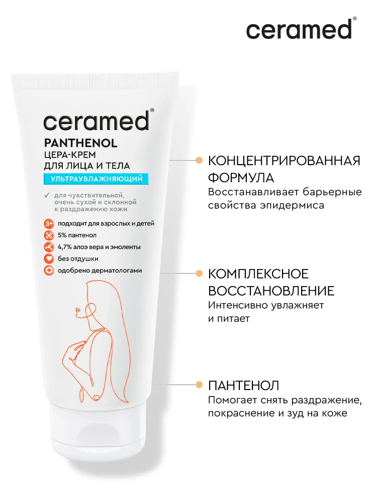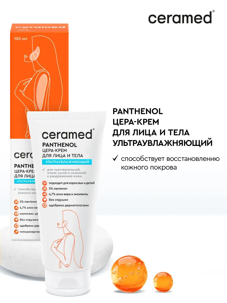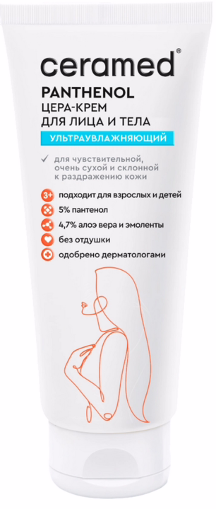 Ультраувлажняющий цера-крем "Ceramed" с Д-пантенолом 5% для чувствительной, очень сухой и склонной к раздражению кожи лица и тела.