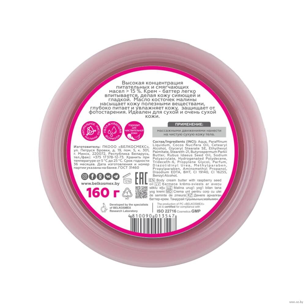 Высокая концентрация питательных и смягчающих масел > 15 %. Крем – баттер легко впитывается, делая кожу сияющей и гладкой.