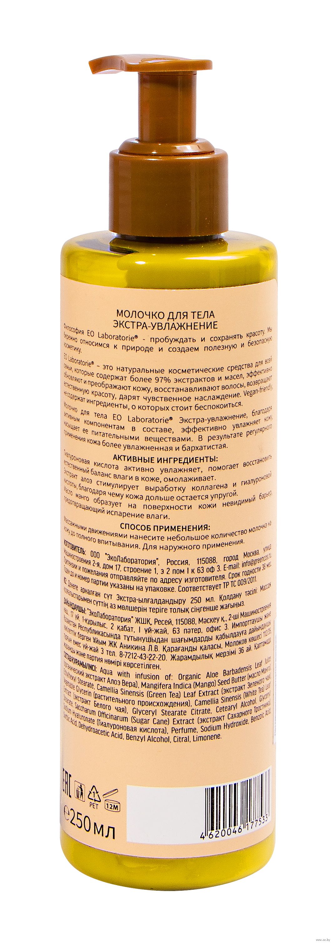 Молочко для тела EO Laboratorie "Экстра-увлажнение" благодаря активным компонентам в составе, эффективно увлажняет кожу, насыщает ее питательными веществами. В результате регулярного применения кожа более увлажненная и бархатистая.