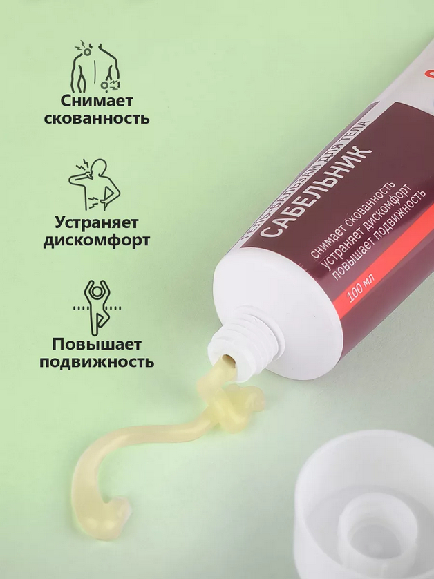 Сабельник болотный оказывает восстанавливающее действие на кожные покровы при дискомфортных ощущениях. Гель обладает тонизирующим свойством, ускоряет процессы восстановления, снимает неприятные последствия скованности, возвращает подвижность. Средство, усиленное эфирными маслами розмарина и можжевельника, обладает выраженными успокаивающими свойствами.