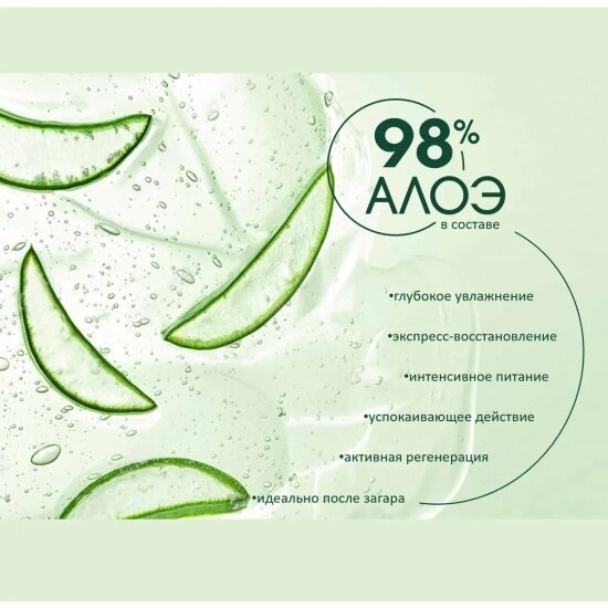 Увлажняющий гель для лица и тела 98% Aloe,мгновенно успокаивает и смягчает кожу, восстанавливает водный баланс, наполняя каждую клеточку живительной влагой. Гель для тела имеет приятную текстуру, моментально впитывается, не оставляет ощущения липкости.