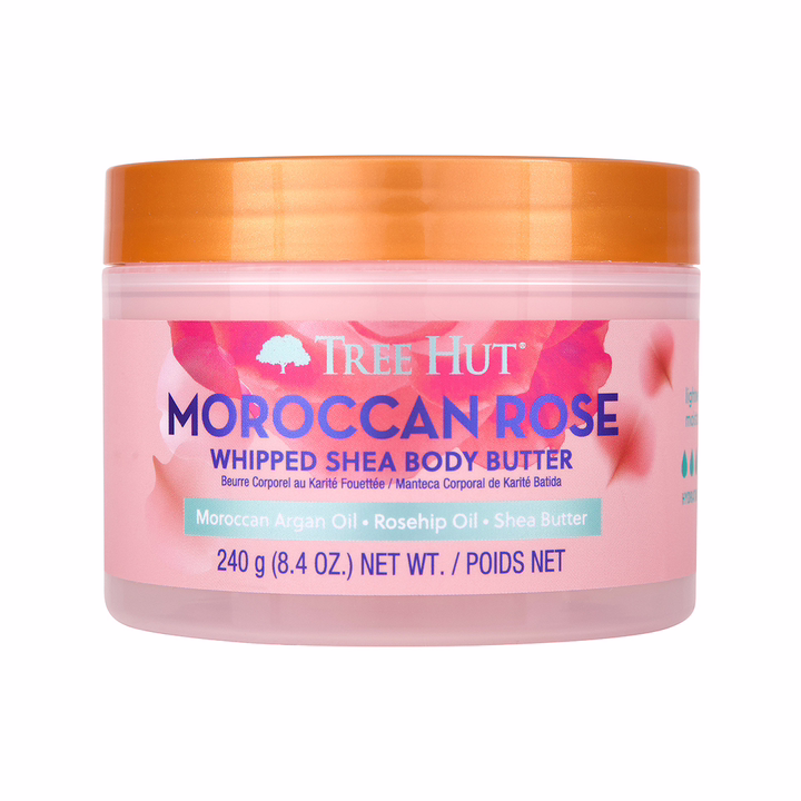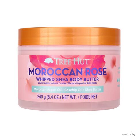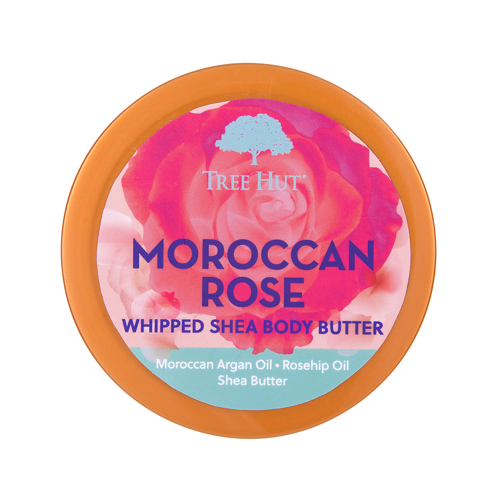Аромат крема-баттера Tree Hut "Moroccan Rose" – романтичное сочетание нот бергамота, чайной розы и амбры, которое перенесет вас в атмосферу нежности и уюта.