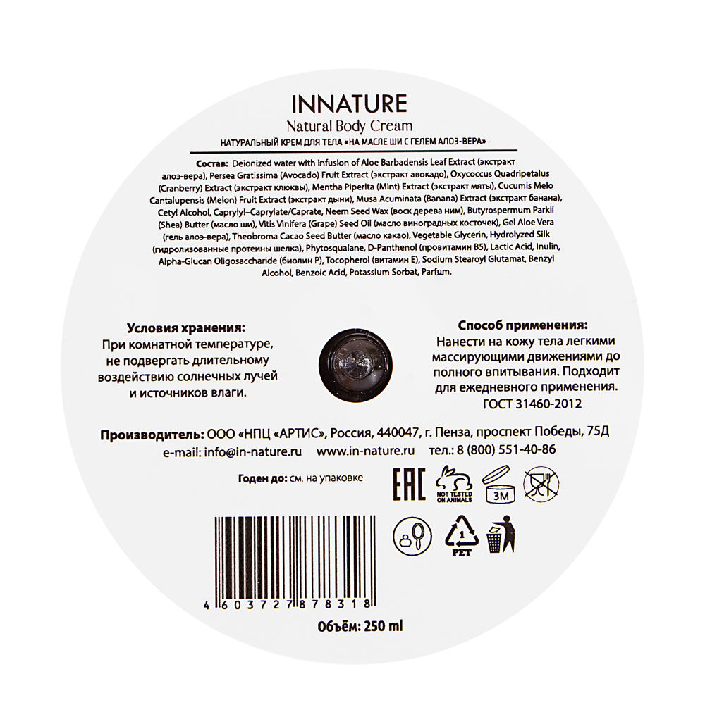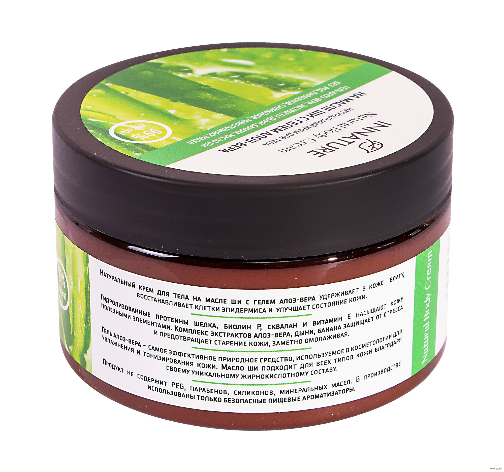 Натуральный крем для тела на масле ши с гелем алоэ-вера удерживает в коже влагу, восстанавливает клетки эпидермиса и улучшает состояние кожи.