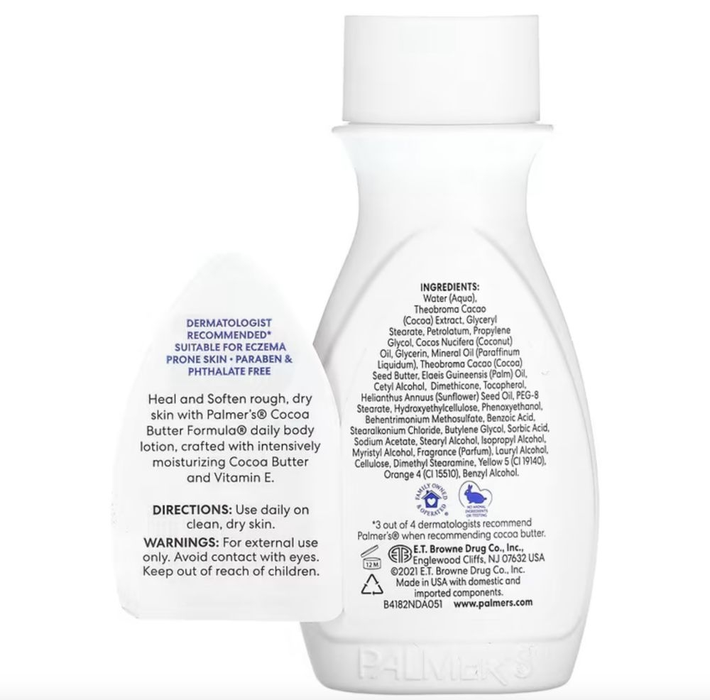 Ежедневный лосьон для тела Palmer's Cocoa Butter Formula, содержащий интенсивно увлажняющее какао-масло и витамин E, заживляет и смягчает шероховатую и сухую кожу.