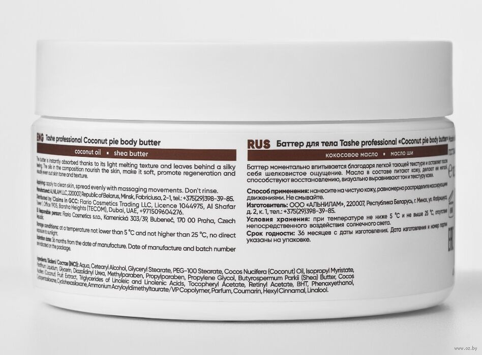 Баттер, с манящим ароматом кокоса, моментально впитывается, благодаря тающей текстуре, не оставляя жирности и следов на одежде. Устраняет ощущение стянутости и сухости.