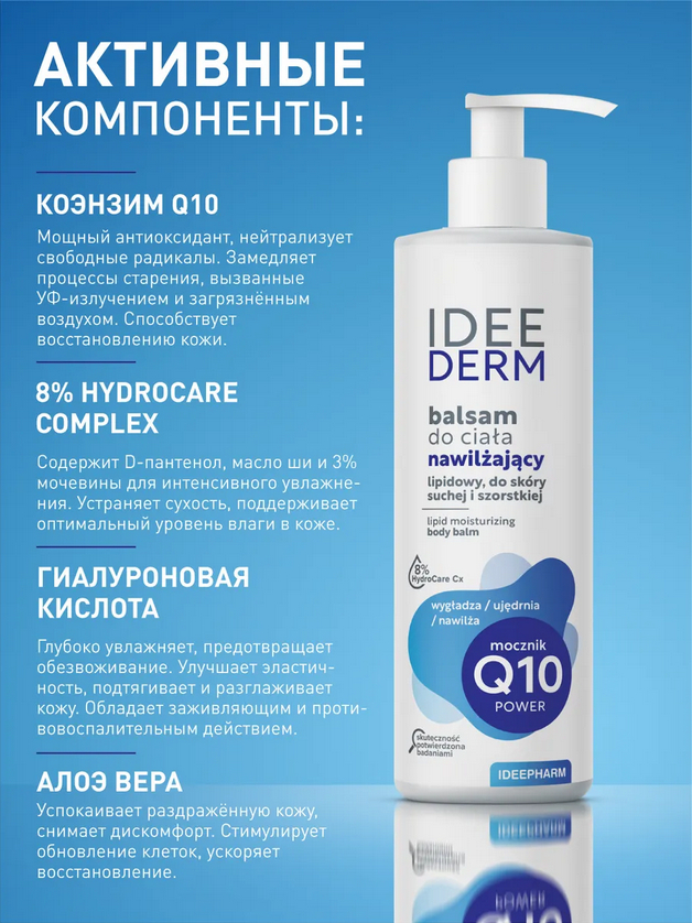 Активные ингредиенты: 8% HydroCare Complex + коэнзим Q10 + гиалуроновая кислота и сок алоэ.