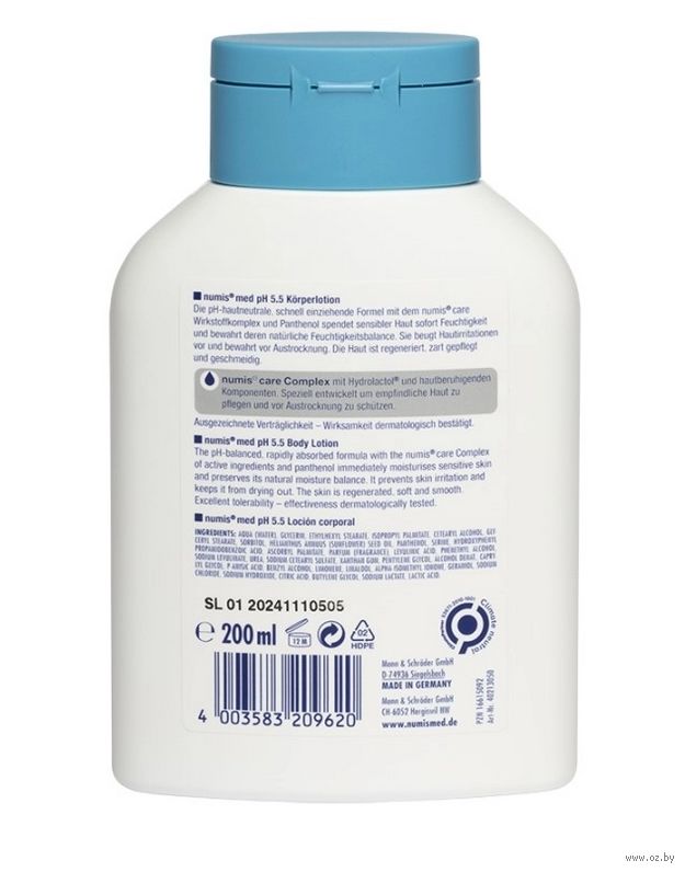Быстро впитывающаяся формула с комплексом активных ингредиентов numis care и пантенолом увлажняет чувствительную кожу и сохраняет ее естественный баланс влаги. Он предотвращает раздражение кожи и не дает ей пересыхать. Кожа восстанавливается, становится мягкой и гладкой.