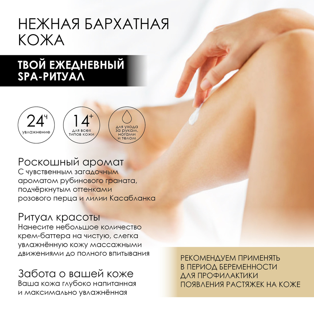 Крем-баттер идеальное средство для нежного ухода за вашей кожей. Крем активно увлажняет и питает, обеспечивая долгосрочный эффект комфорта и заботы.