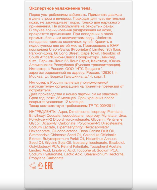 Лосьон помогает удерживать влагу и снижает скорость естественной потери воды через поверхность кожи.