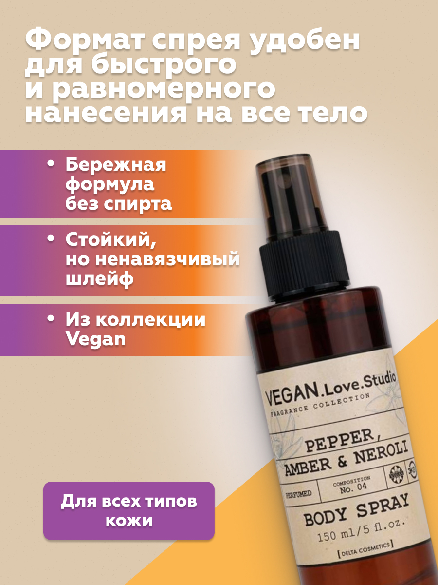Утонченный парфюмированный спрей для тела без спирта с изысканным ароматом перца, амбры и нероли. Этот продукт станет неотъемлемой частью вашего ритуала ухода за собой, придавая вашей коже не только восхитительный аромат, но и нежное увлажнение.
