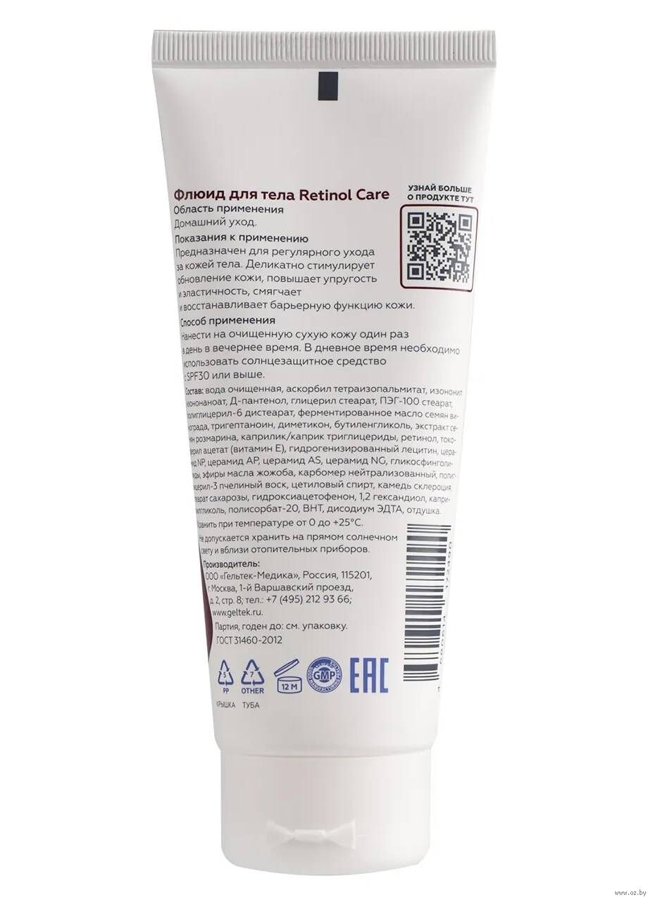 Предназначен для регулярного ухода за кожей тела. Основной компонент средства 0.1% ретинола. Деликатно стимулирует обновление кожи, повышает упругость и эластичность, смягчает и восстанавливает барьерную функцию кожи. Ускоряет процессы регенерации клеток, помогает уменьшить видимость тонких линий и выровнять микрорельеф кожи.