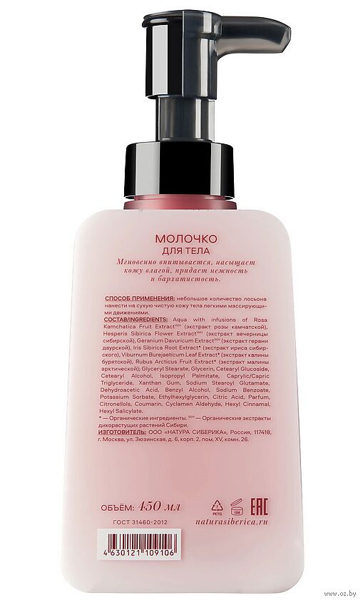 Молочко для тела мгновенно впитывается, насыщает кожу влагой, придает гладкость и бархатистость.