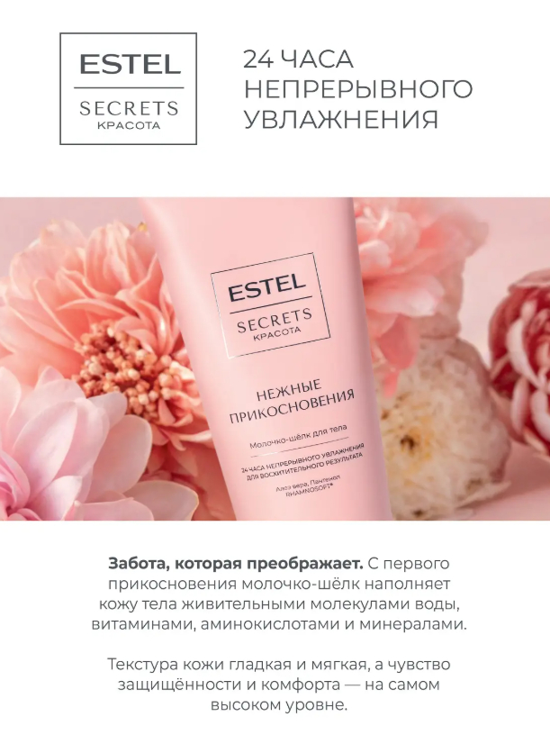 Забота, которая преображает. С первого прикосновения молочко-шёлк наполняет кожу тела живительными молекулами воды, витаминами, аминокислотами и минералами. Текстура кожи гладкая и мягкая, а чувство защищённости и комфорта – на самом высоком уровне.