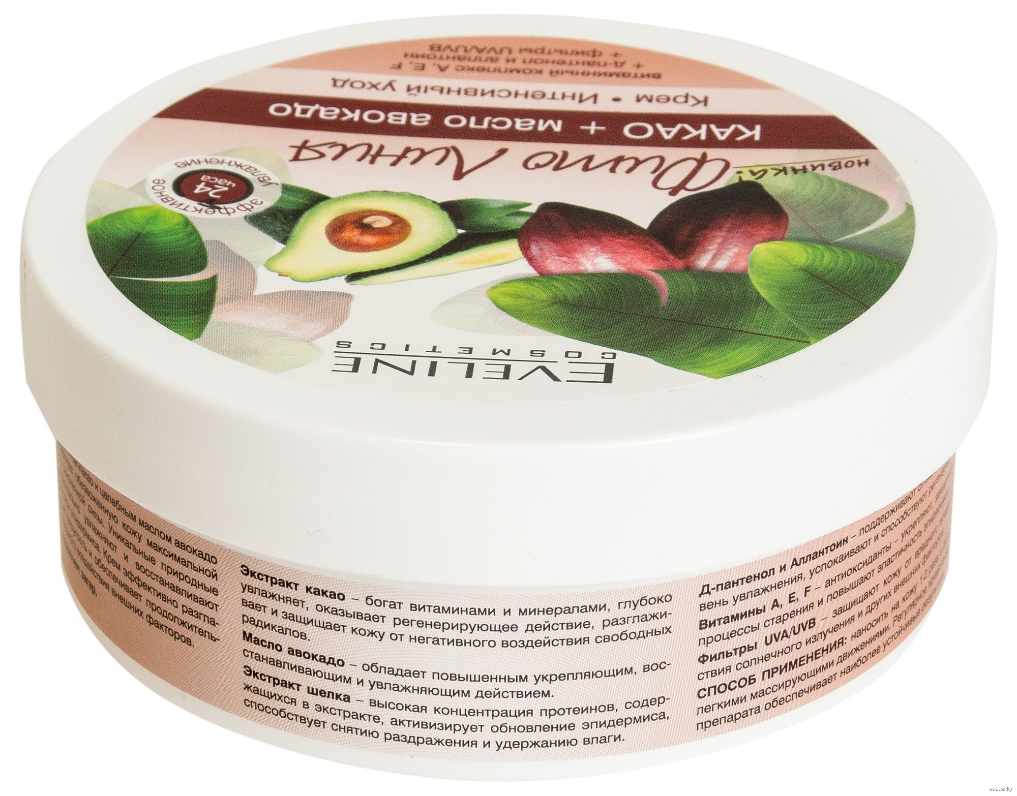 Обогащающие формулу крема экстракт какао и масло авокадо наполняют ослабленную кожу максимальной дозой энергии. Уникальные природные компоненты интенсивно увлажняют и питают глубинные слои эпидермиса. Крем эффективно разглаживает кожу, повышает упругость и эластичность, а также обеспечивает продолжительную защиту от вредного воздействия внешних факторов.