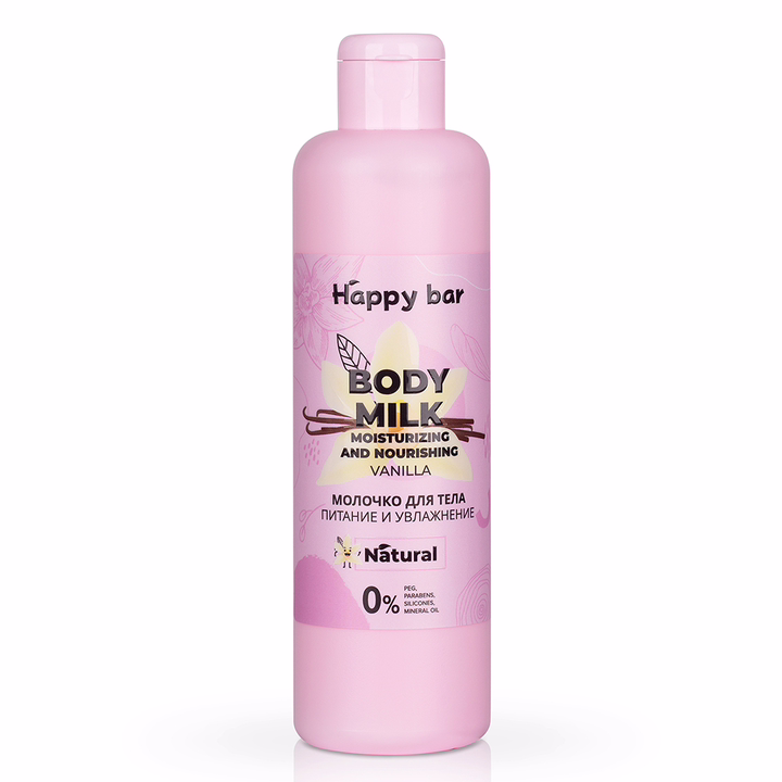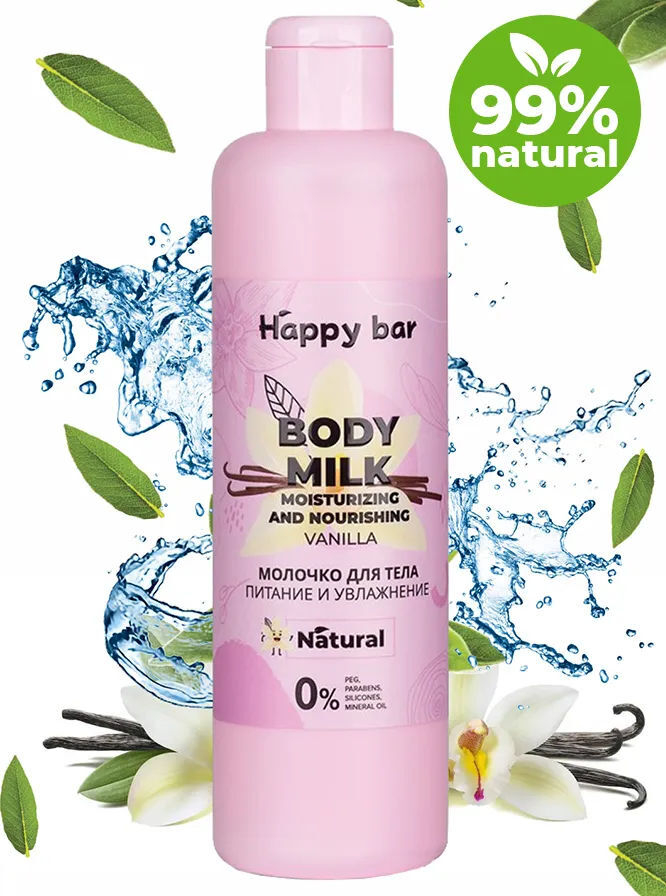 Деионизированная вода с экстрактом ванили, масло рапса, октилдодеканол, глицерилмоностеарат, растительный глицерин, цетеариловый спирт, гель алоэ вера, масло пальмы, аллантоин, бензиловый спирт, бензоат натрия, сорбат калия, молочная кислота, ароматическая композиция.