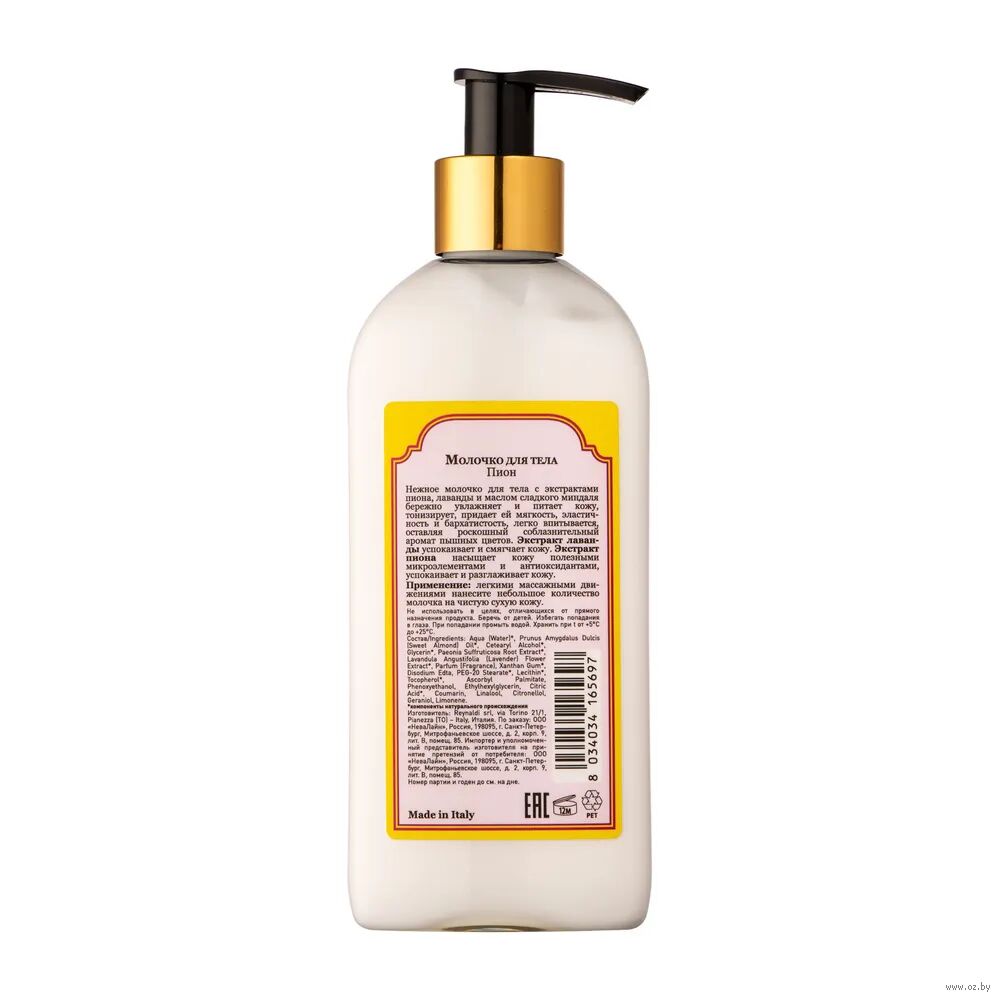 Нежное молочко для тела c экстрактами пиона, лаванды и маслом сладкого миндаля бережно увлажняет и питает кожу, тонизирует, придает ей мягкость, эластичность и бархатистость, легко впитывается, оставляя роскошный соблазнительный аромат пышных цветов.
