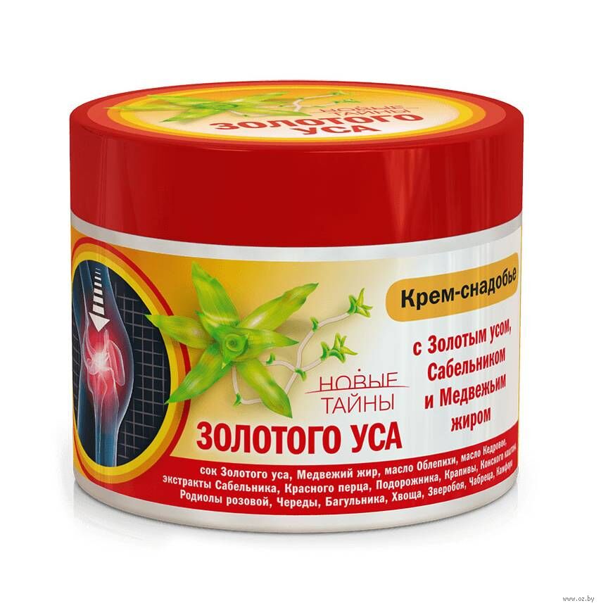 Состав крем-снадобья на основе сока золотого уса усилен экстрактом сабельника и медвежьим жиром. Данный комплекс является оптимальным для восстановления и поддержания функционального состояния опорно-двигательного аппарата, норма- лизует внутриклеточный кальциевый обмен.