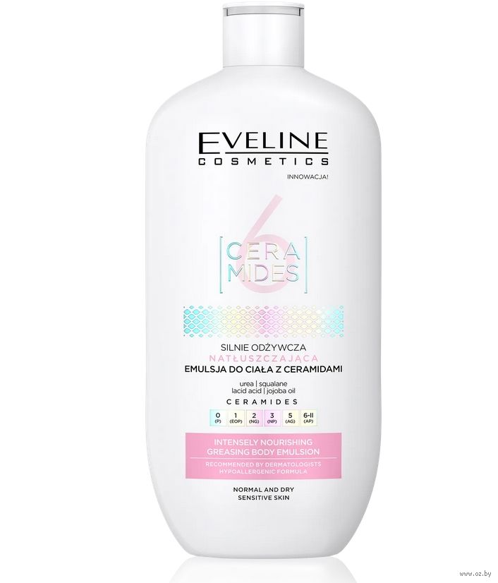 Разработанная в сотрудничестве с дерматологом формула высокопитательной эмульсии для тела 6 церамидов гипоаллергенна и предназначена для ухода за чувствительной кожей, нуждающейся в интенсивном питании и регенерации.