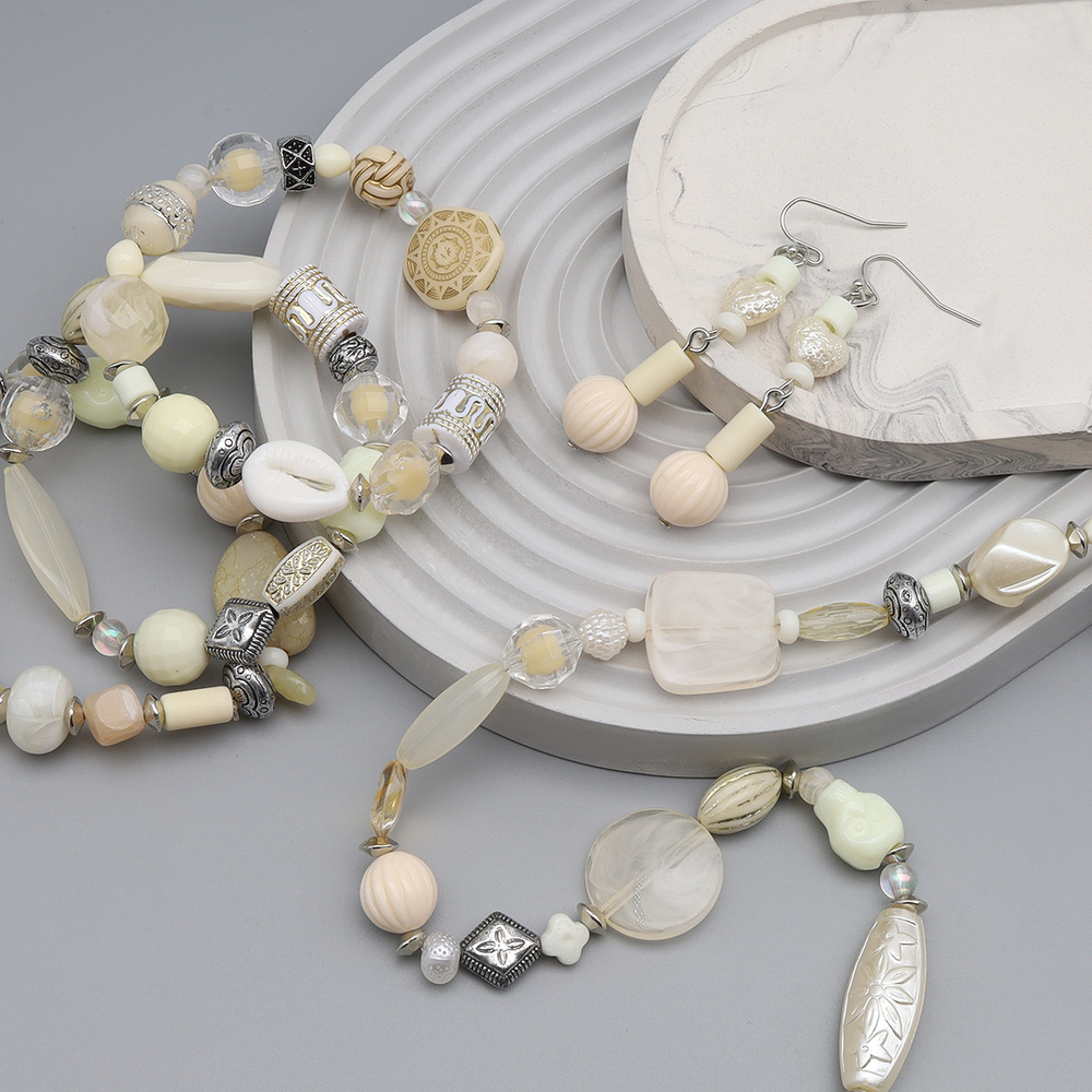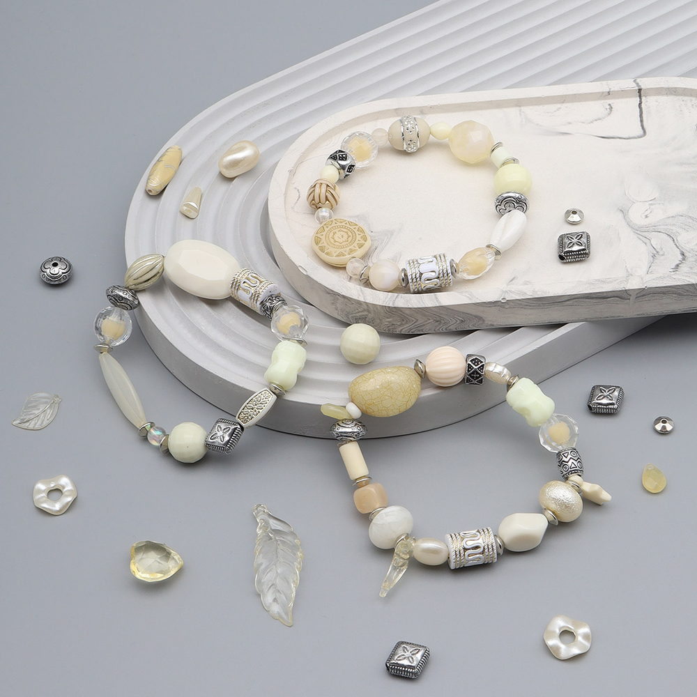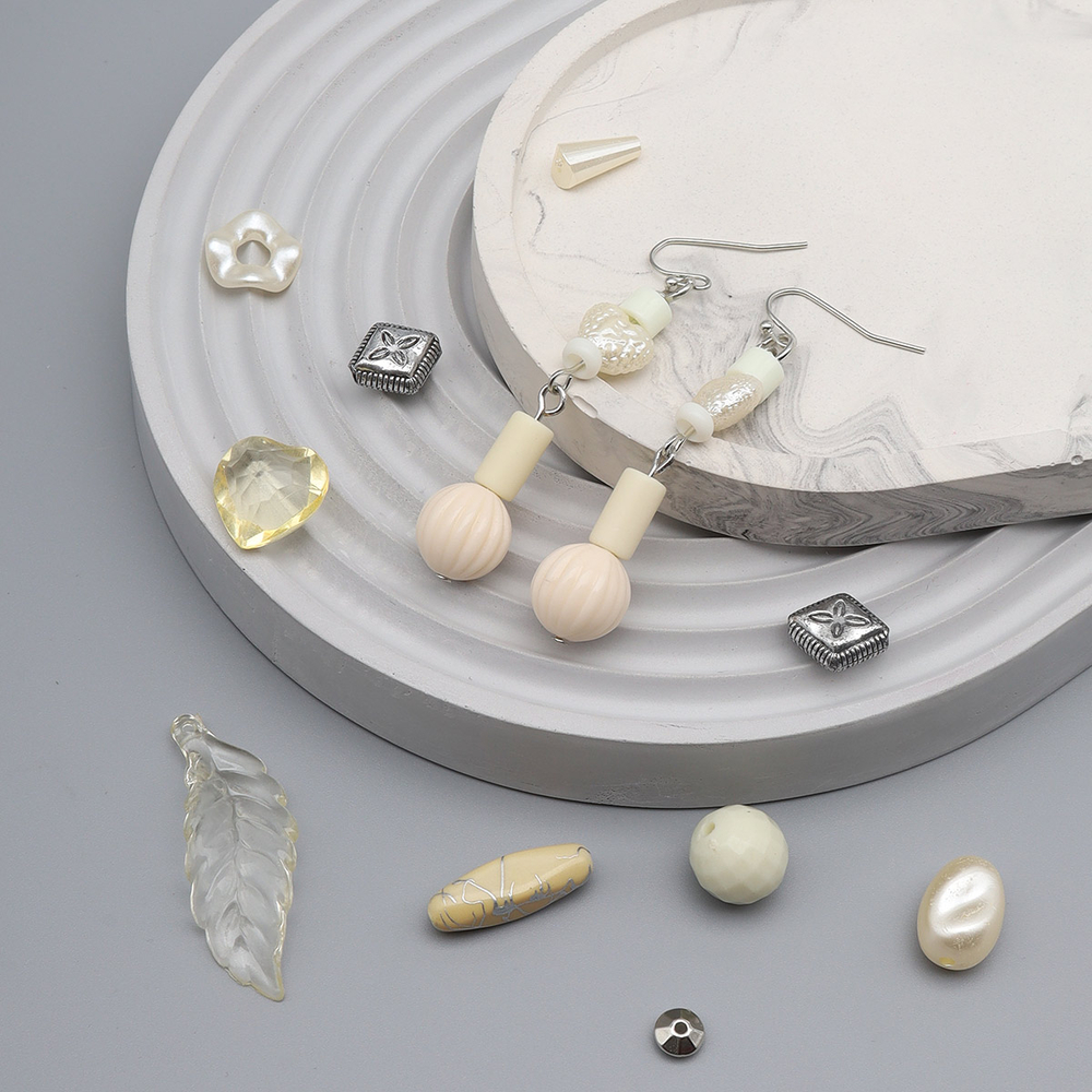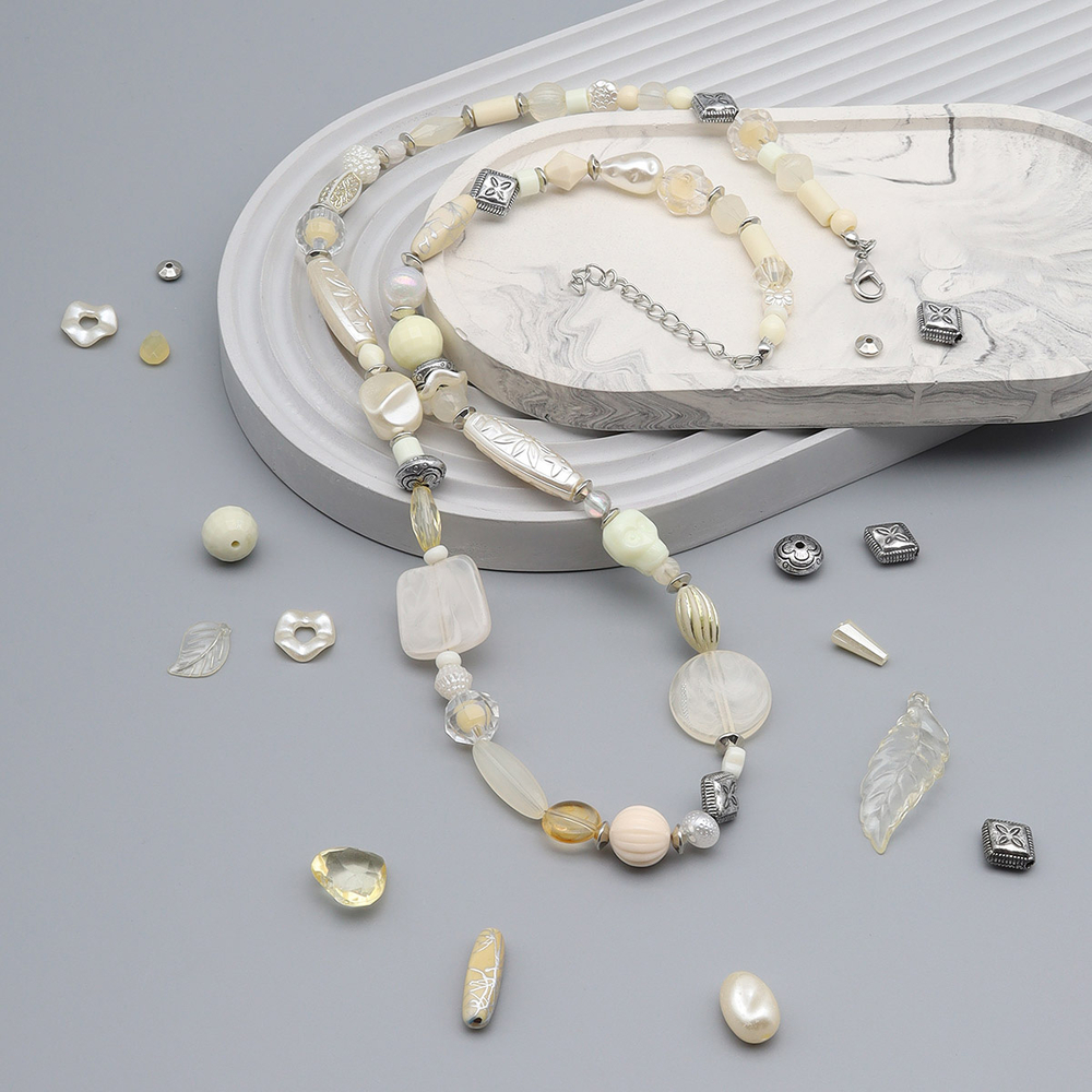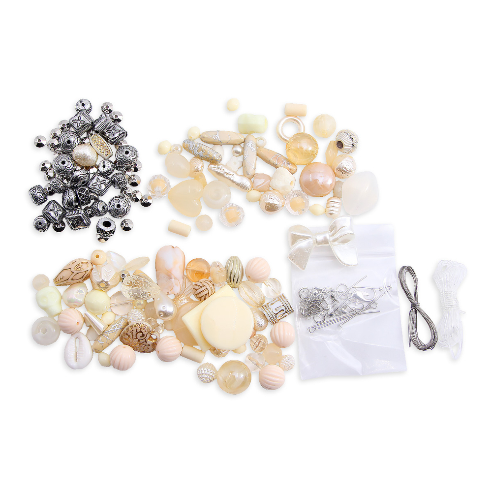 Бусины: акриловые, 65 г, бежевый цвет; маленькие бусины, 55 шт.