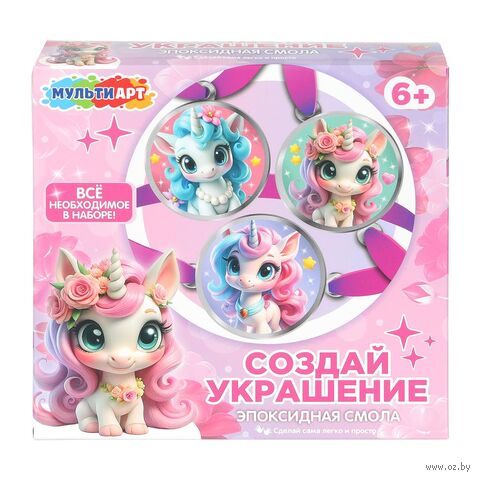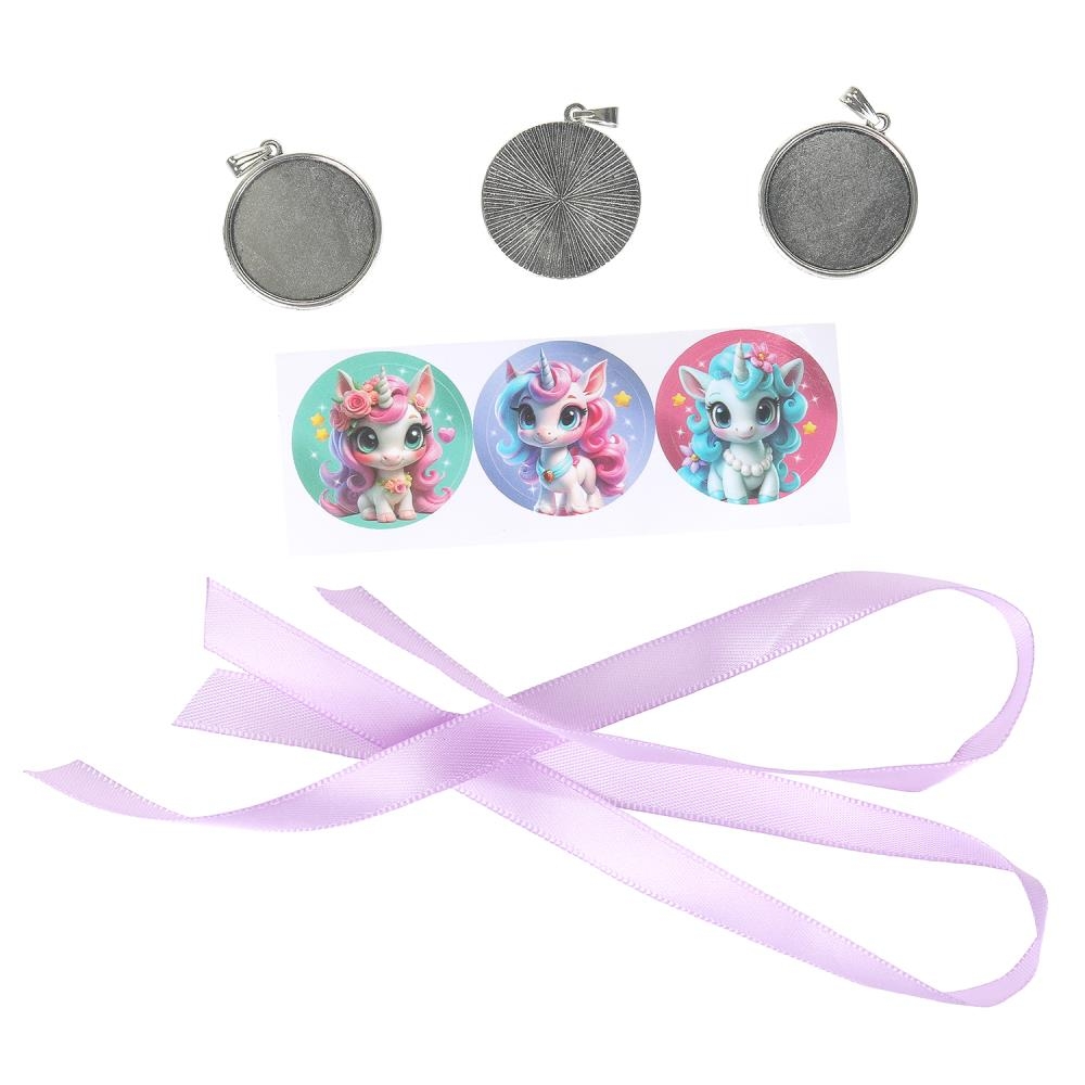 В наборе уже есть всё необходимое, чтобы создать своими руками красивые медальоны с изображением очаровательных единорожек.