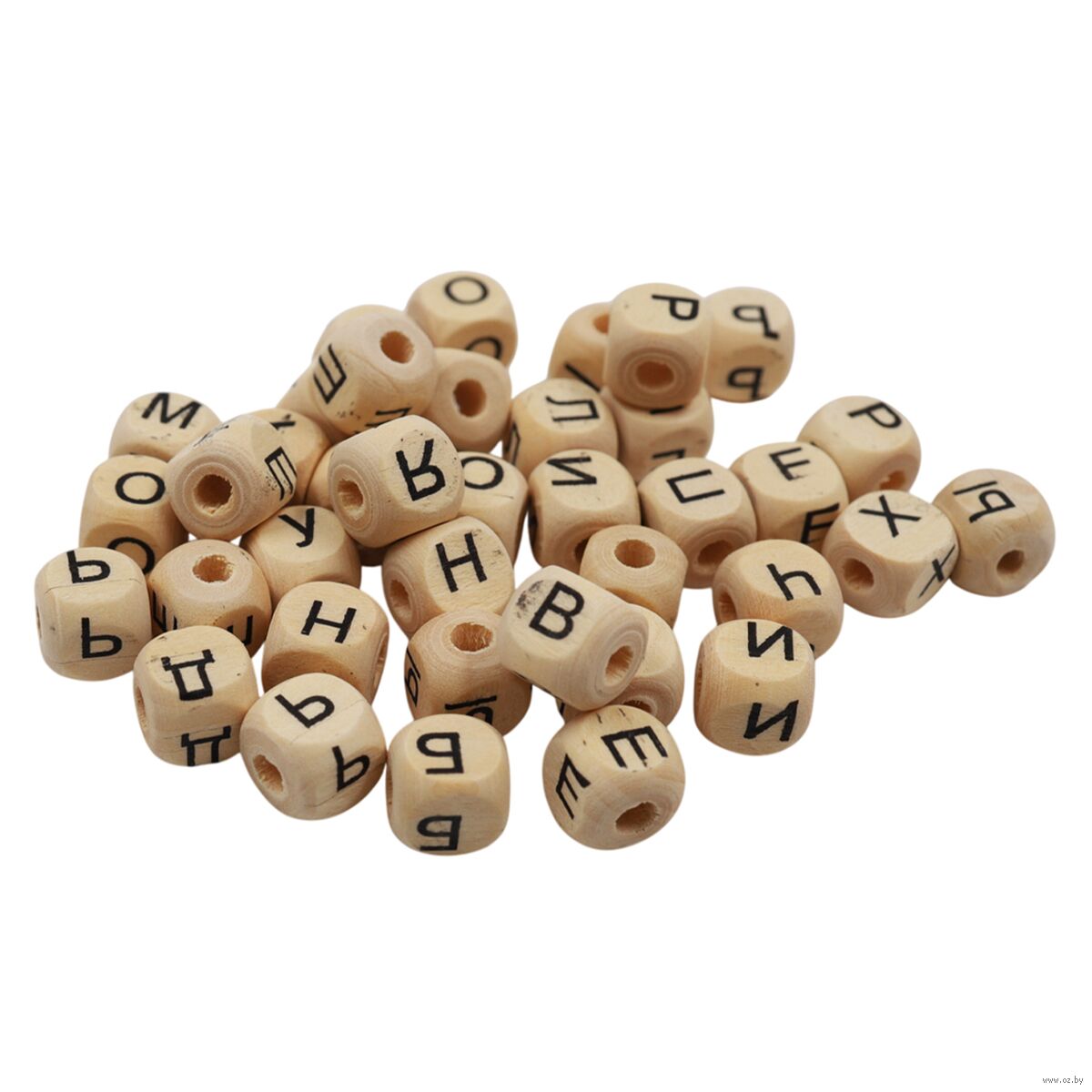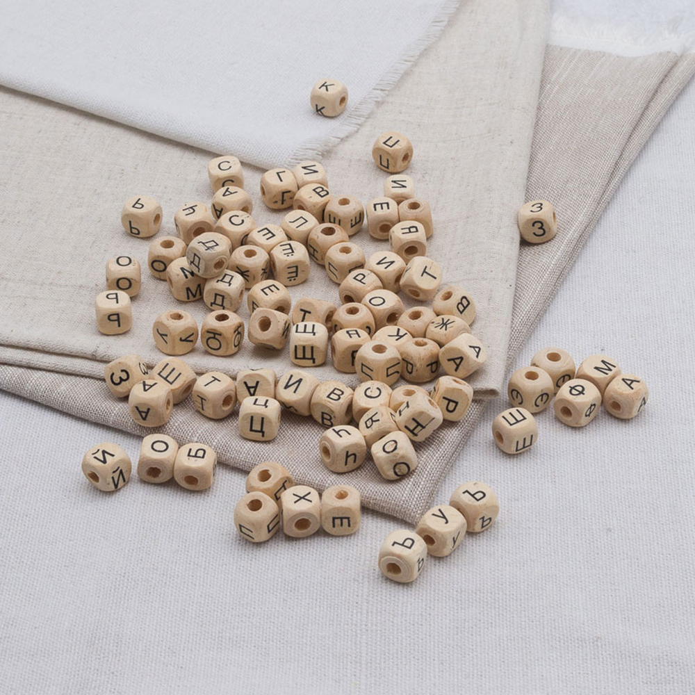 Деревянные бусины в форме кубиков с русскими буквами – основа для различных поделок. Из деревянных бусин можно создавать бижутерию, украшения на рождественскую елку, развивающие игрушки для детей и многое другое.