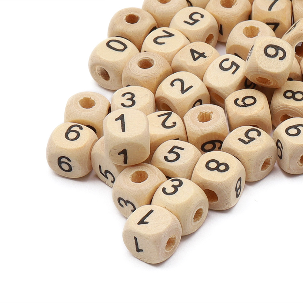 Деревянные бусины в форме кубиков с цифрами – основа для различных поделок. Из деревянных бусин можно создавать бижутерию, украшения на рождественскую елку и многое другое.